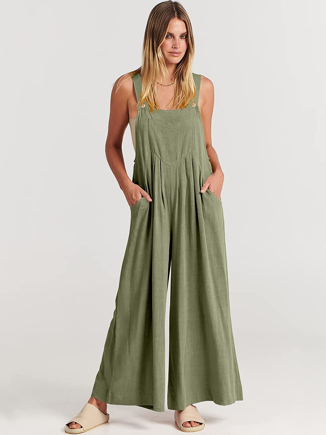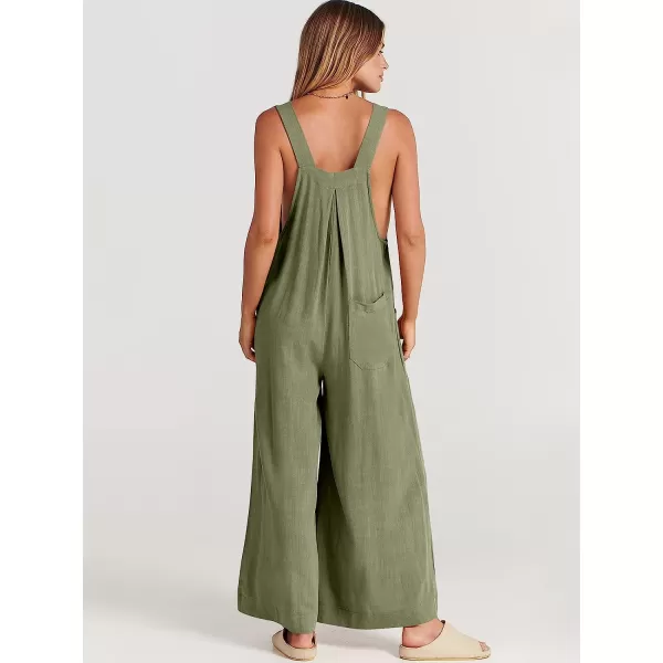 imageANRABESS Womens Overalls Jumpsuit Casual Loose Sleeveless Adjustable Straps Bib Wide Leg Outfits with PocketsOlive