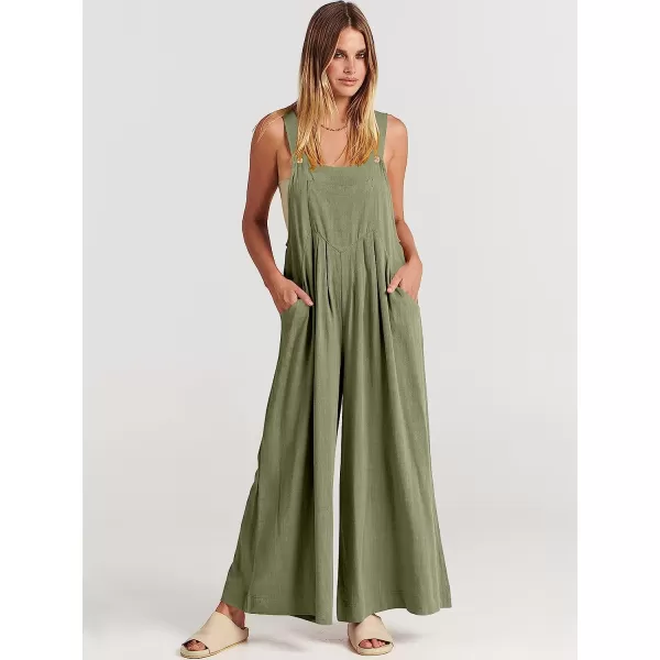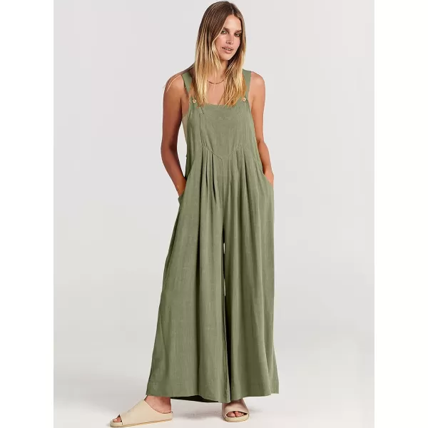 ANRABESS Women’s Overalls Jumpsuit Casual Loose Sleeveless Adjustable Straps Bib Wide Leg Outfits with Pockets(Olive)