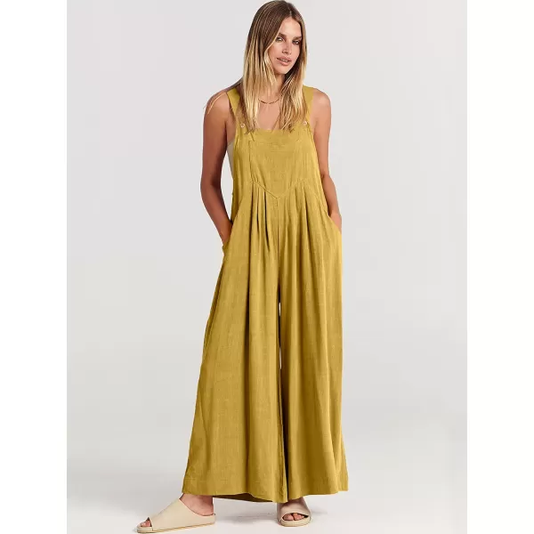 ANRABESS Women's Overalls Jumpsuit Casual Loose Sleeveless Adjustable Straps Bib Wide Leg Outfits with Pockets(Yellow)