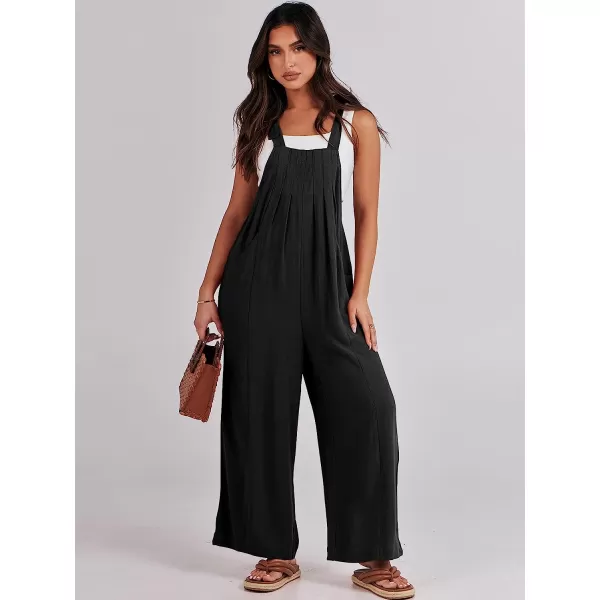 imageANRABESS Womens Overalls Jumpsuit Casual Loose Sleeveless Adjustable Tie Straps Bib Wide Leg Outfits with PocketsBlack