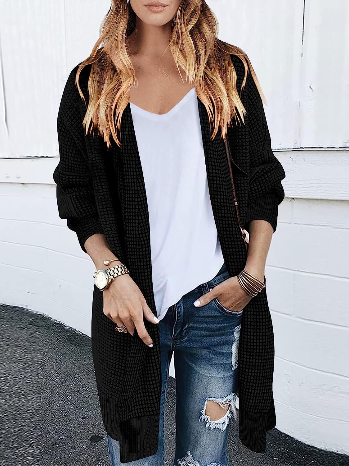 Features – This cardigan is oversized,open front with ribbed neckline,long sleeve with ribbed cuff,waffle pattern,sweater cardigan coat.