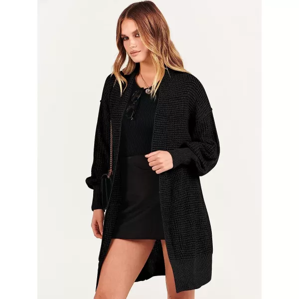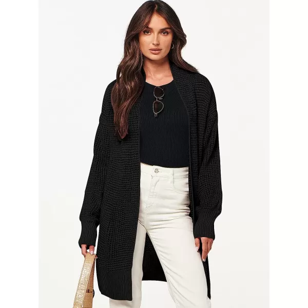 ANRABESS Women's Oversized Cardigan Sweater Long Sleeve Open Front Chunky Waffle Knit Ribbed Hem Coatigan Outwear(Black)
