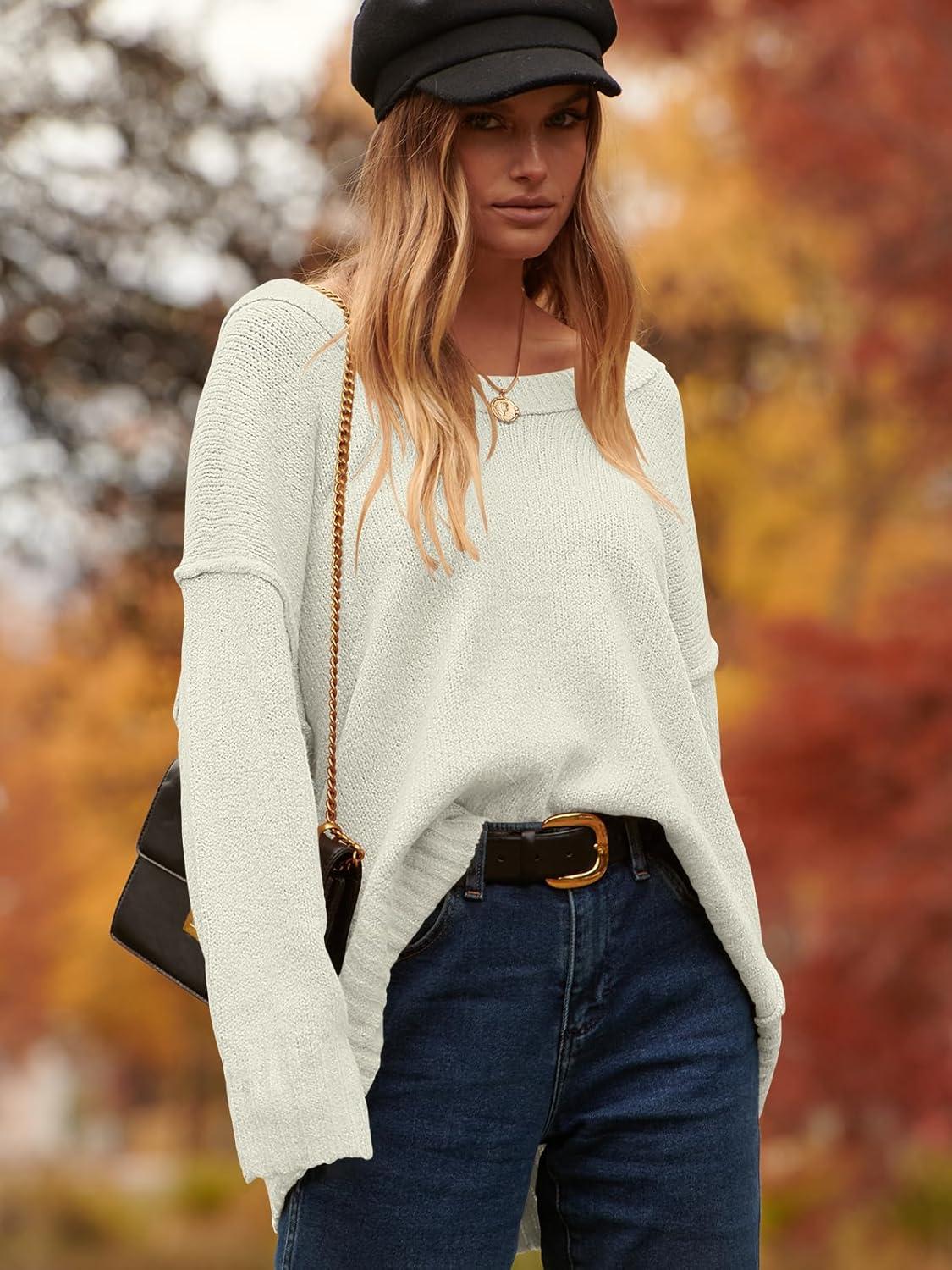 Our clearance section features the best deals on ANRABESS Women’s Oversized Casual Loose Slouchy Scoop V Neck Batwing Long Sleeve Knit 2025 Fall Pullover Sweaters(White) and accessories. Check it out now!