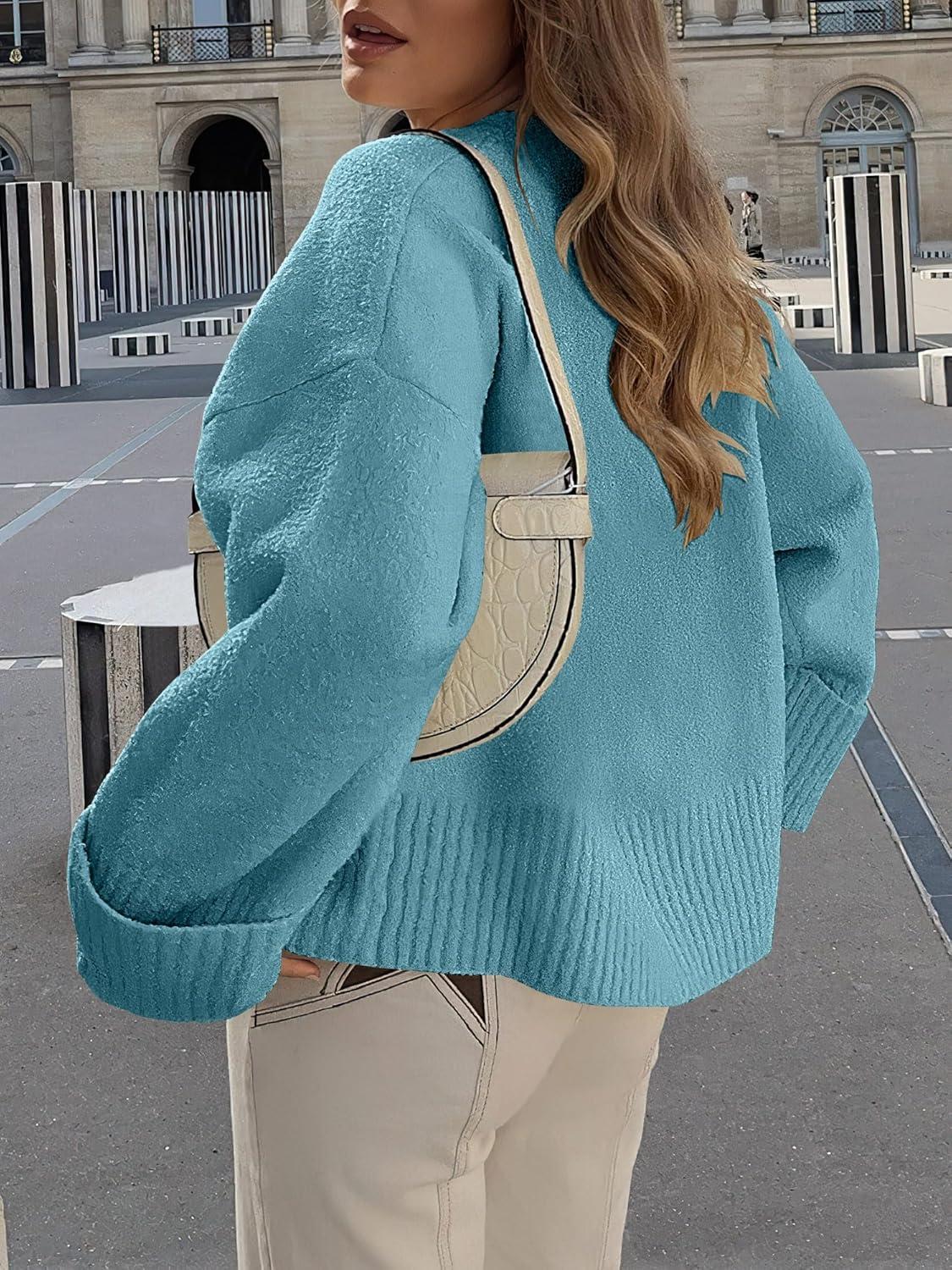 ANRABESS Women's Oversized Crewneck Long Sleeve Fuzzy Knit Casual Chunky Warm 2025 Fall Pullover Sweaters Top Trendy Outfits(Lake)