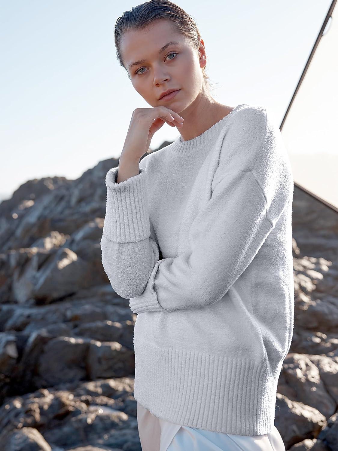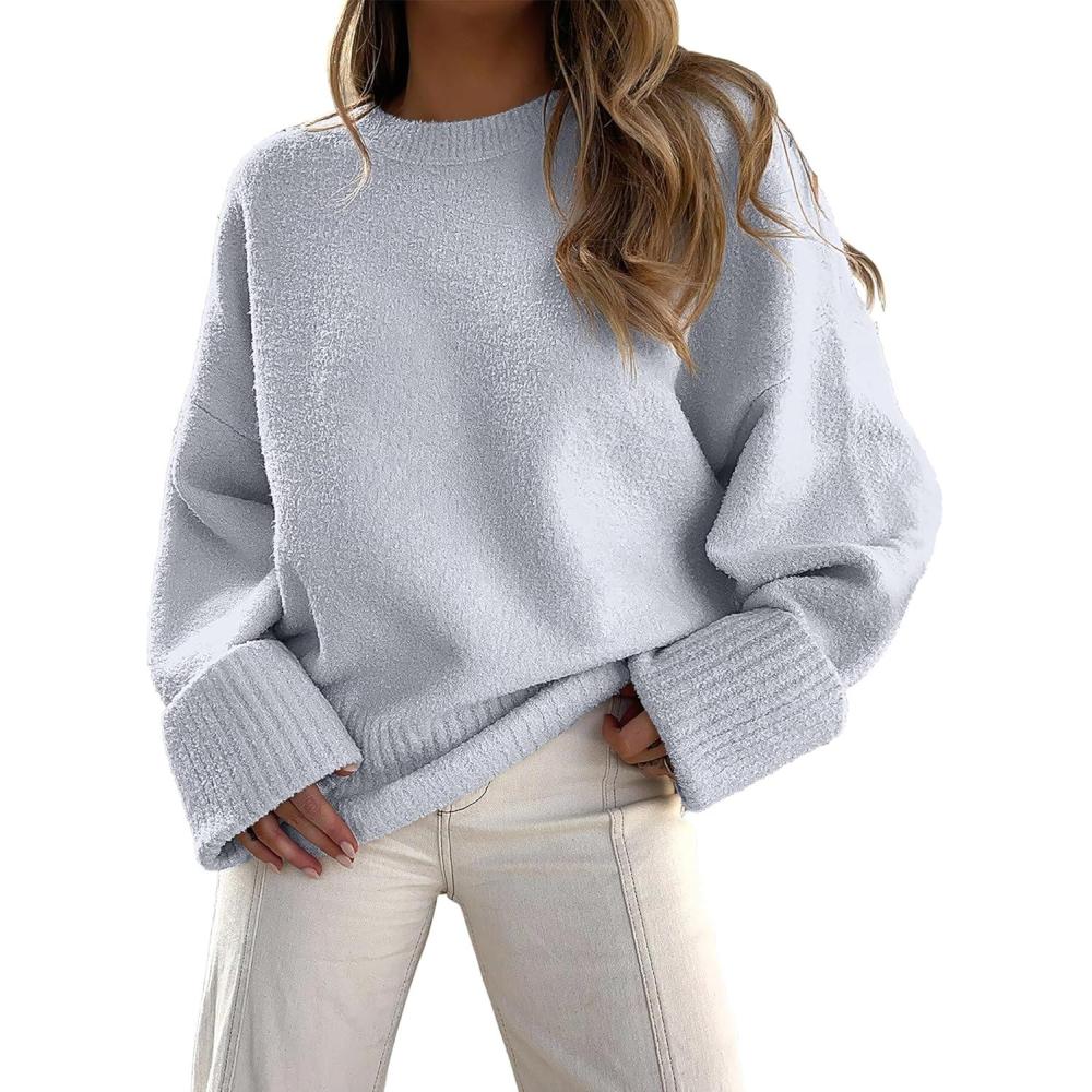 ANRABESS Women’s Oversized Crewneck Long Sleeve Fuzzy Knit Casual Chunky Warm 2025 Fall Pullover Sweaters Top Trendy Outfits(Light Gray)