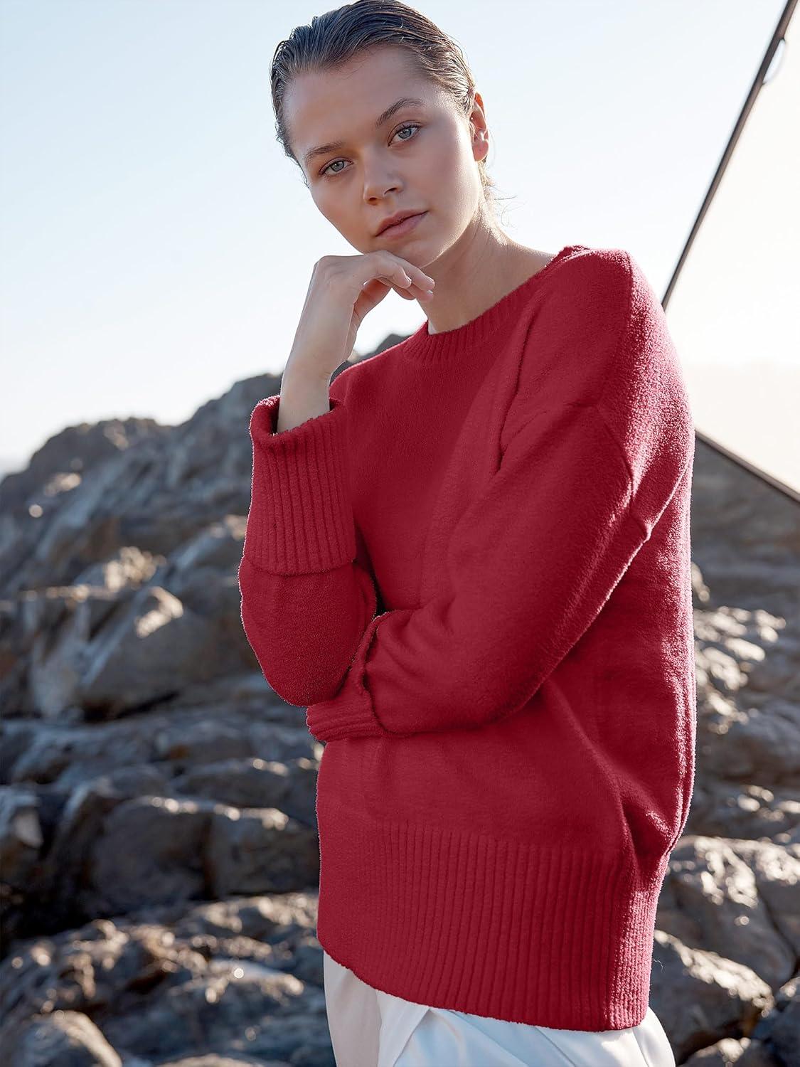 ANRABESS Women’s Oversized Crewneck Long Sleeve Fuzzy Knit Casual Chunky Warm 2025 Fall Pullover Sweaters Top Trendy Outfits(Red)