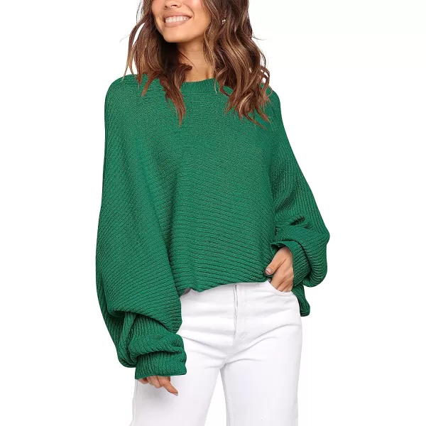 ANRABESS Women’s Oversized Crewneck Sweater Batwing Puff Long Sleeve Ribbed Slouchy Pullover Sweater(Green)