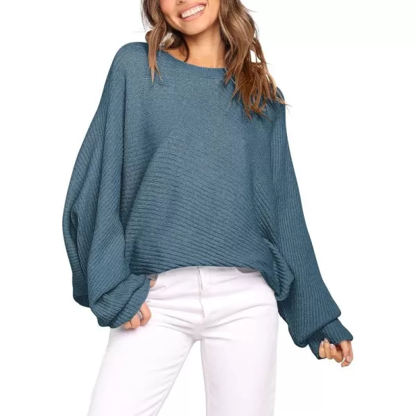 imageANRABESS Womens Oversized Crewneck Sweater Batwing Puff Long Sleeve Ribbed Slouchy Pullover SweaterGreen