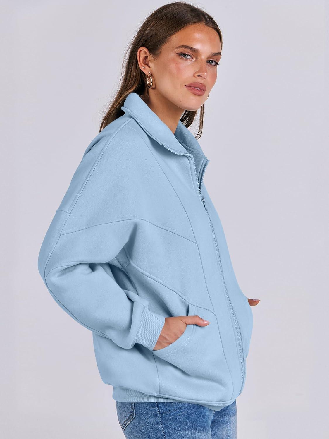 ANRABESS Women's Oversized Full Zip Up Sweatshirts Jacket 2025 Fall Fleece Long Sleeve Hoodies Outfits(Sky)