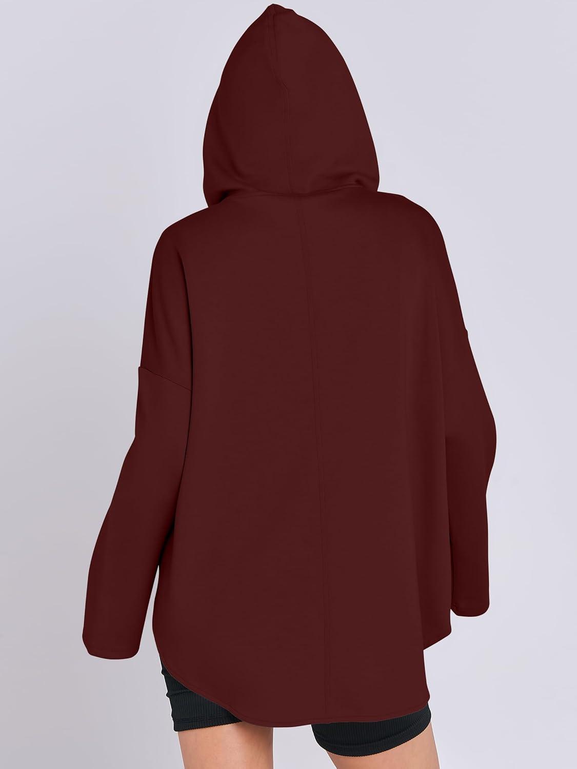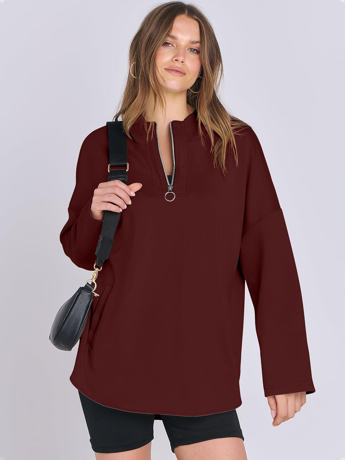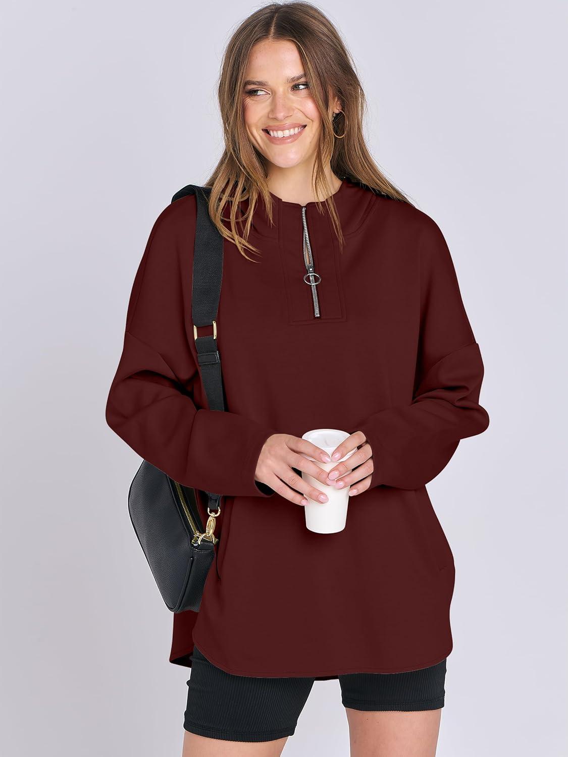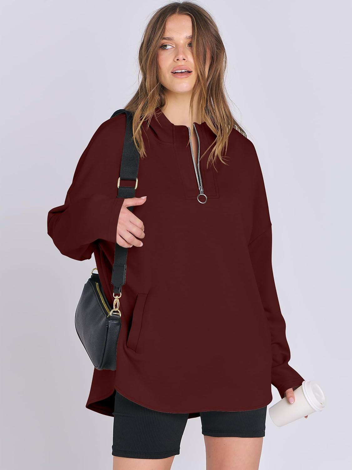 ANRABESS Womens Oversized Hoodie Quarter Zip Sweatshirts 2025 Fall Winter Tunic Pullover Top Trendy Teen Girls Preppy Clothes(Burgundy)