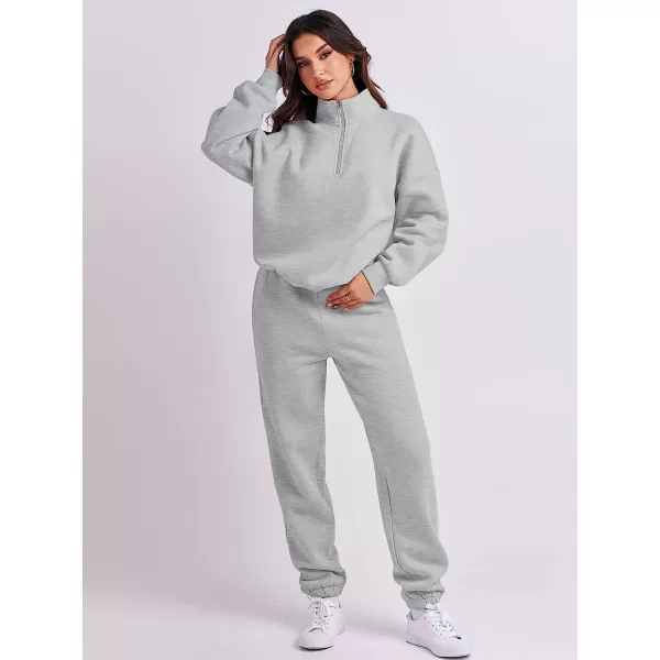 ANRABESS Women's Oversized Long Sleeve Lounge Sets Casual Top and Pants 2 Piece Outfits Sweatsuit with Pockets(05-grey)