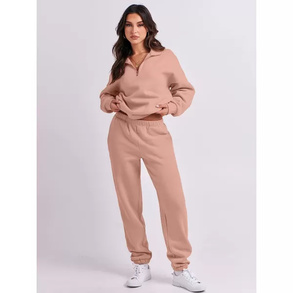 Fashionable Design: Stay on trend with our fashionable 2 piece sweatsuit, featuring a v-neck design, ribbed cuffs, 1/4 zipper, and convenient pockets.