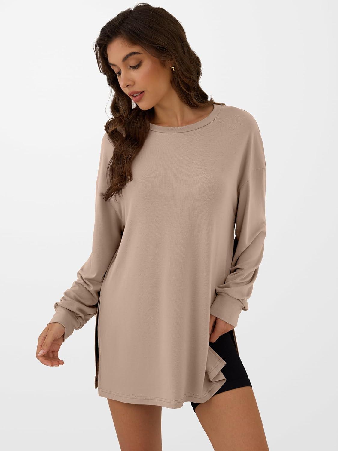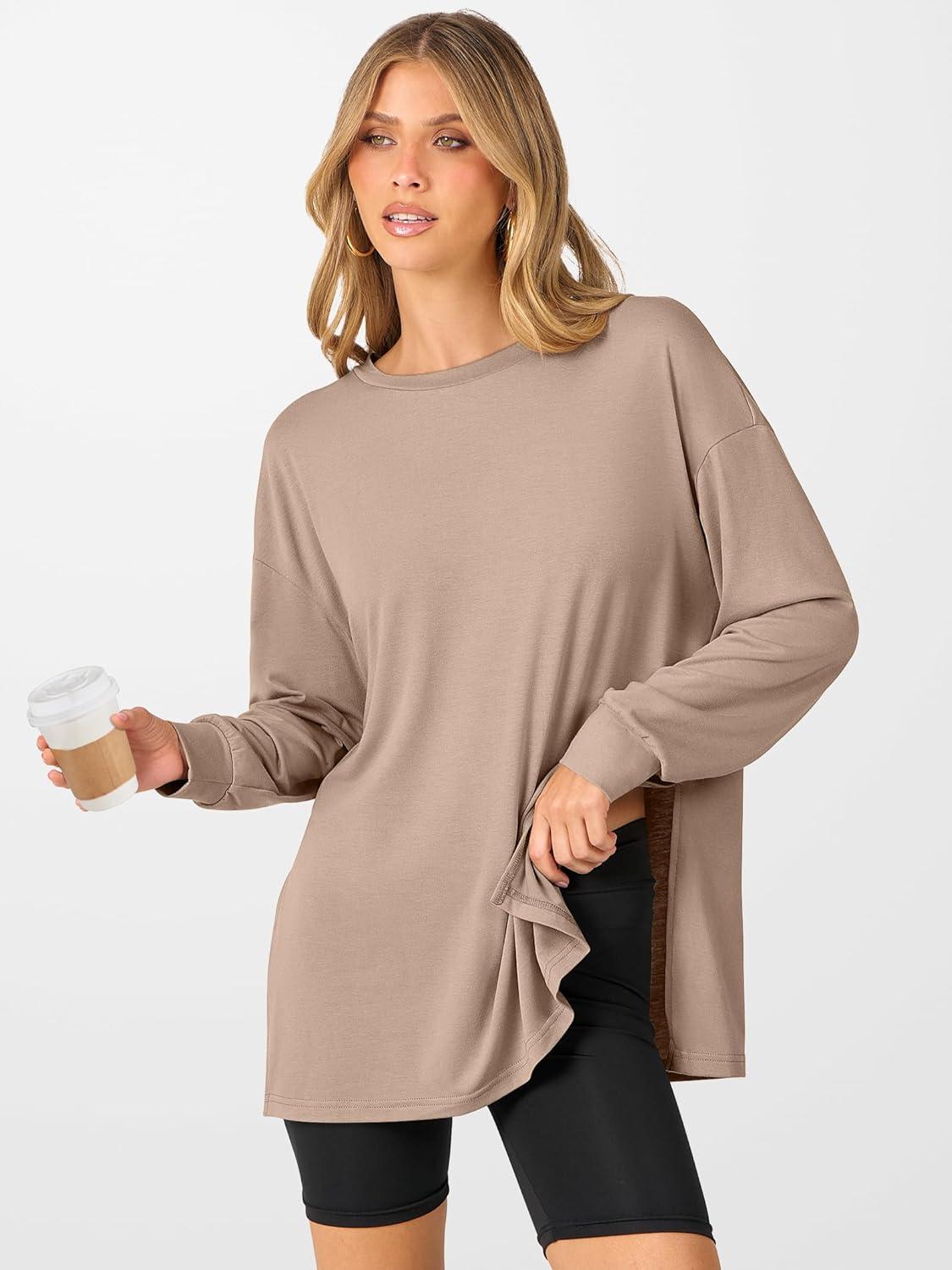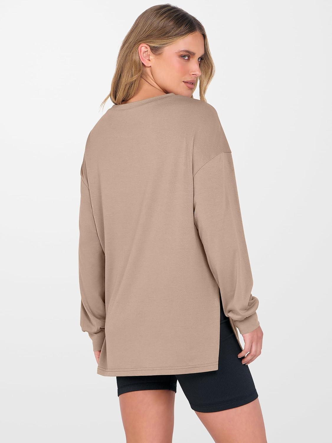 imageANRABESS Womens Oversized Long Sleeve shirts Fall Workout Tunic Tops Athletic Gym Tshirts Soft Basic Tees 2025 OutfitsLight Brown