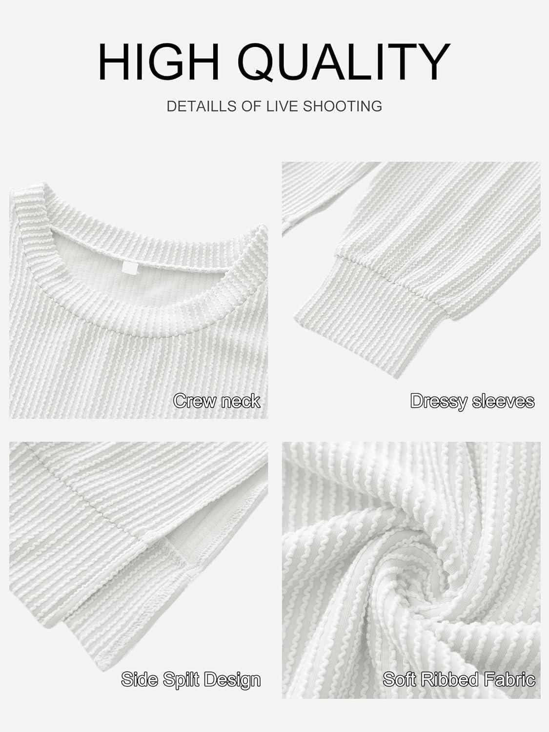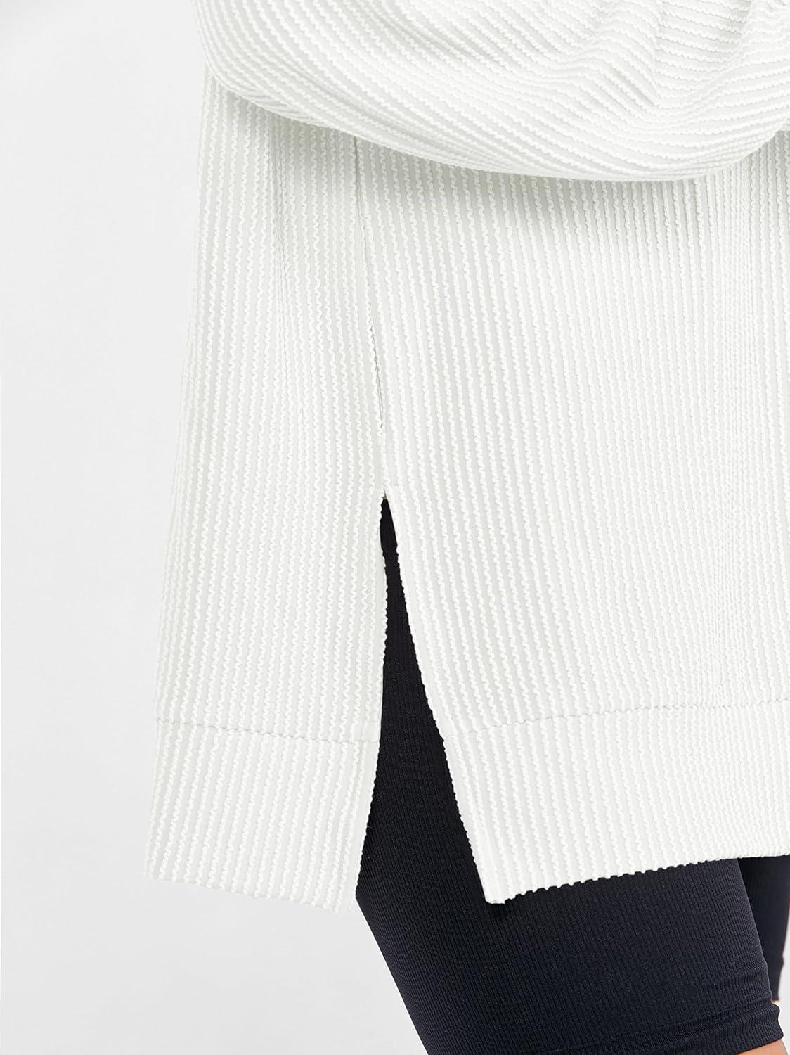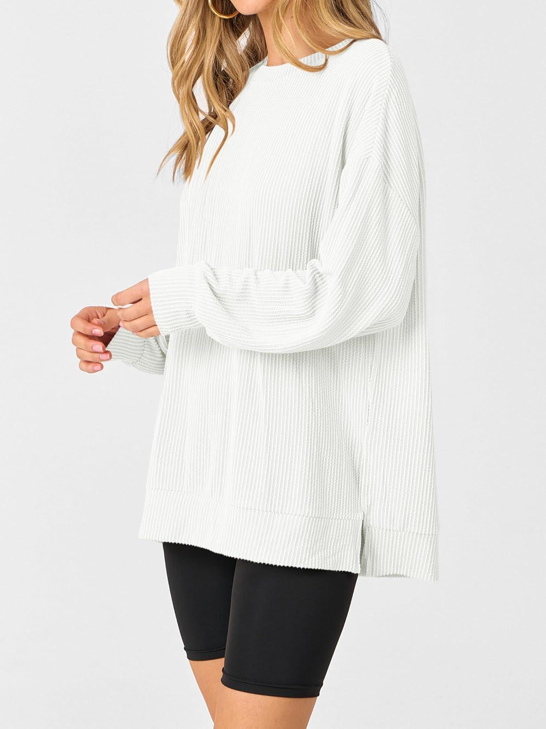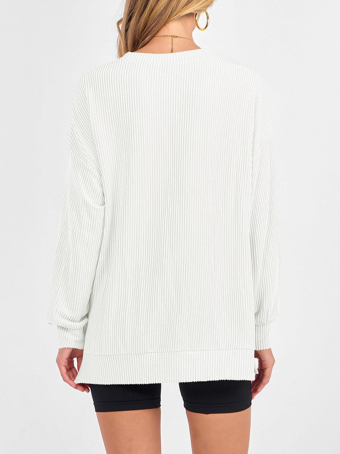 ANRABESS Womens Oversized Long Sleeve Shirts Ribbed Knit Tunic Tops Side Spilt Casual 2025 Fall Outfits(White)