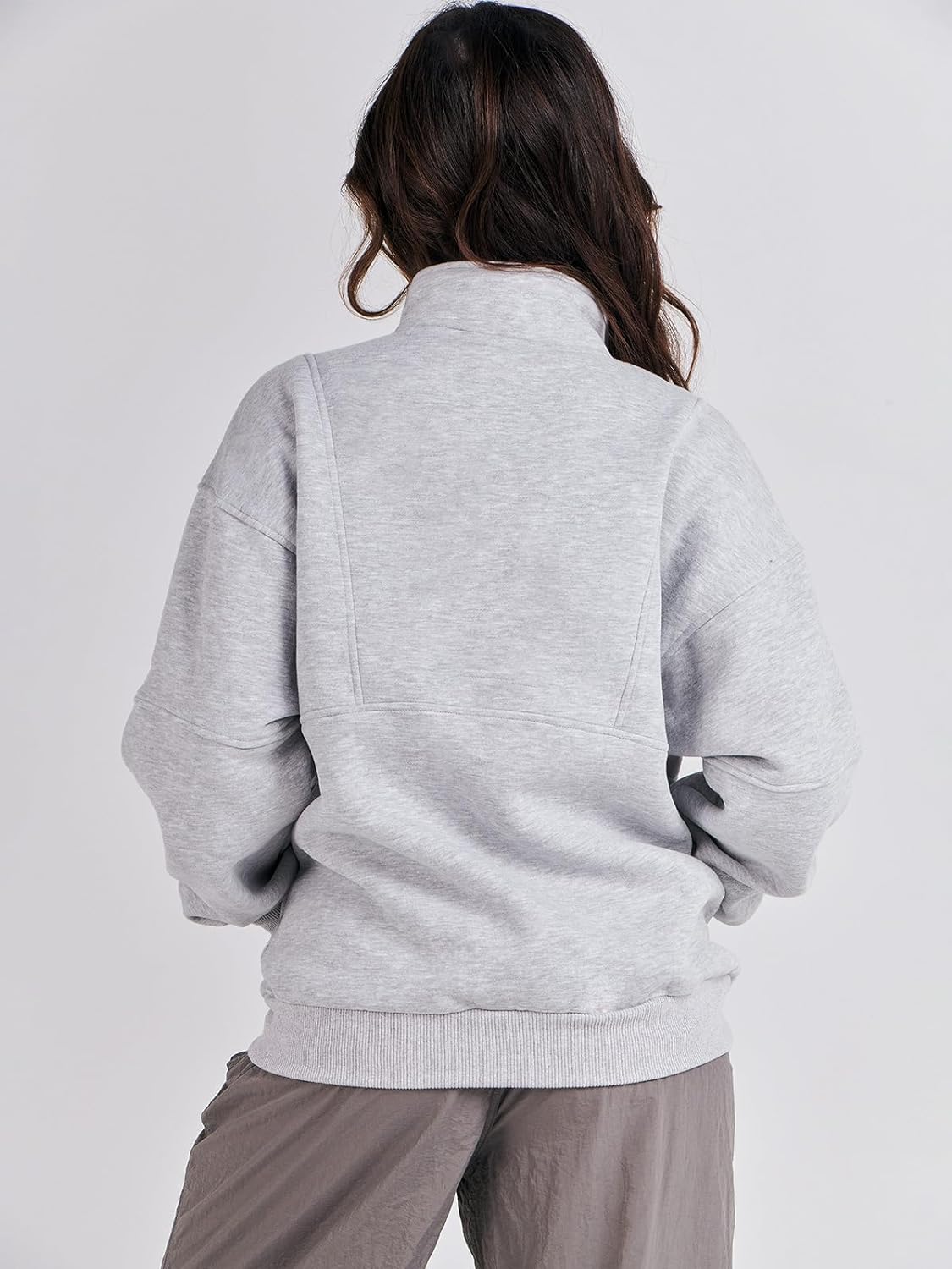 ANRABESS Women’s Oversized Quarter Zip Sweatshirt Long Sleeve Drop Shoulder Pullover Fleece Half Zip Hoodie Fall Clothes(Light Grey)