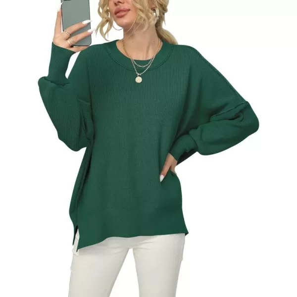 imageANRABESS Women Crewneck Batwing Sleeve 2023 Fall Oversized Side Slit Ribbed Knit Pullover Sweater TopDark Green