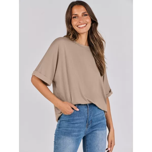 imageANRABESS Womens Oversized T Shirts Short Sleeve Crewneck Summer Tops Casual Loose Basic Tee Shirts 2024 Trendy ClothesKhaki