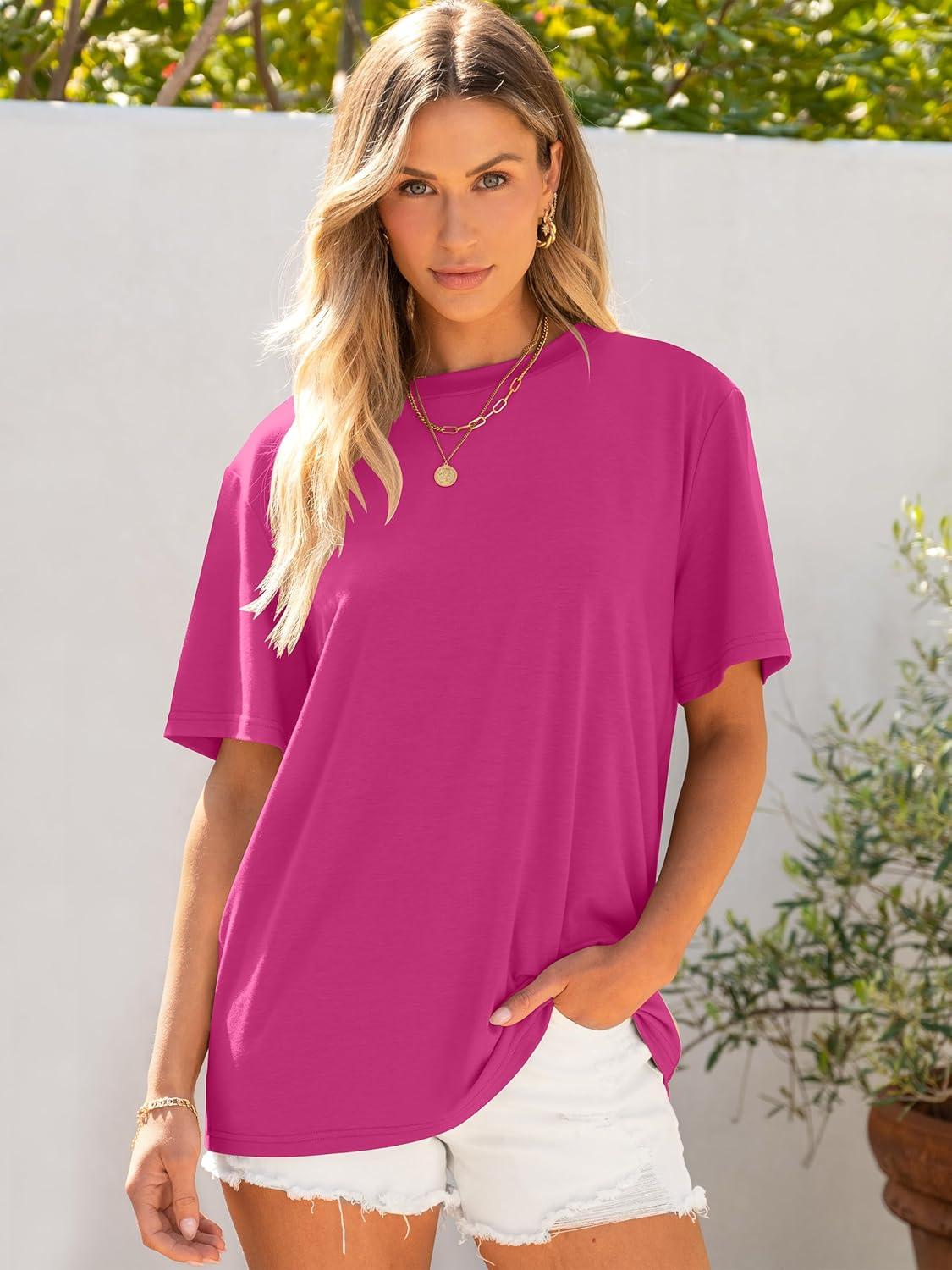 ANRABESS Womens Oversized T Shirts Short Sleeve Crewneck Tops Casual Loose Basic Tee Shirts 2025 Summer Trendy Outfits(Hot Pink)