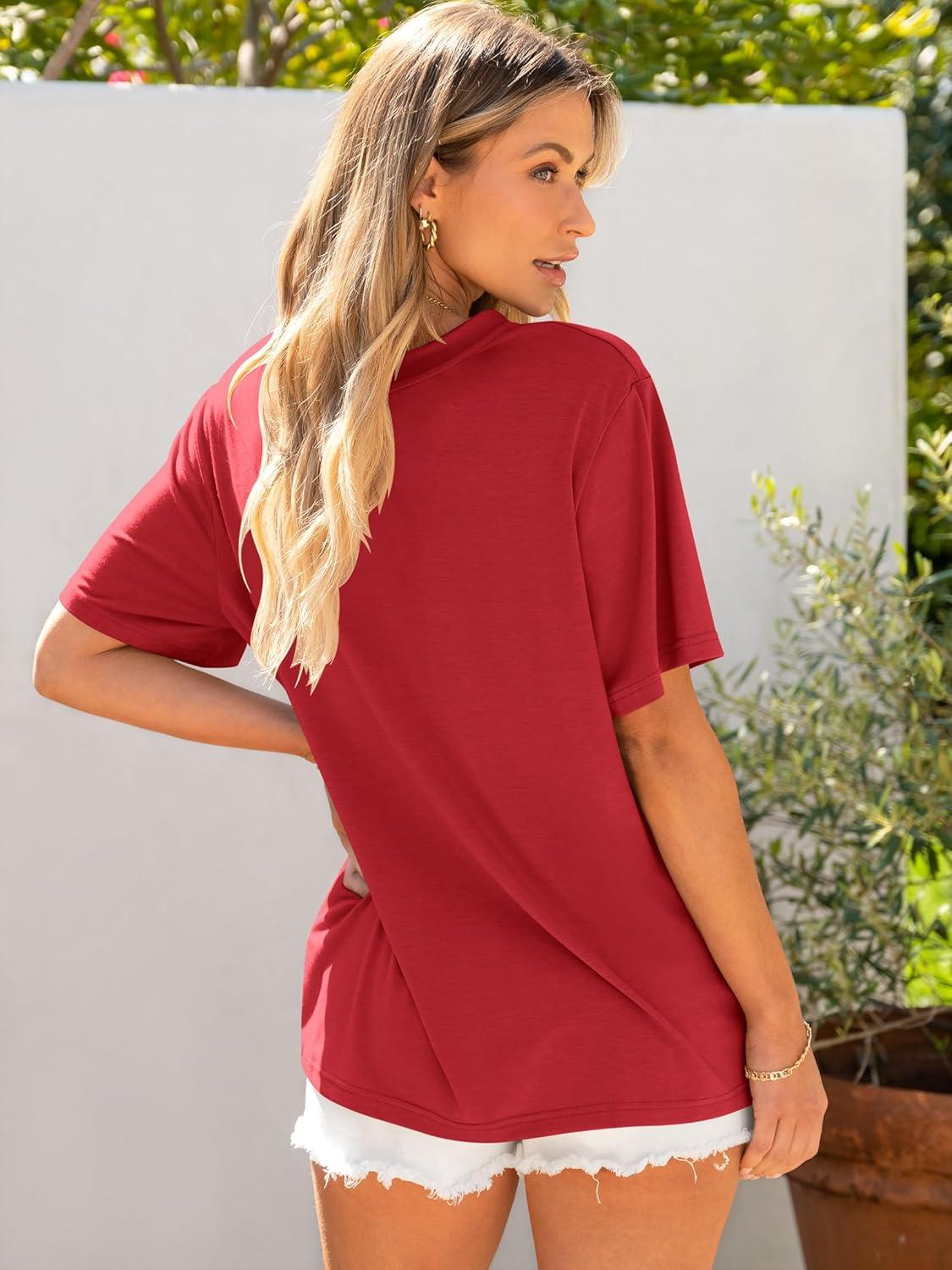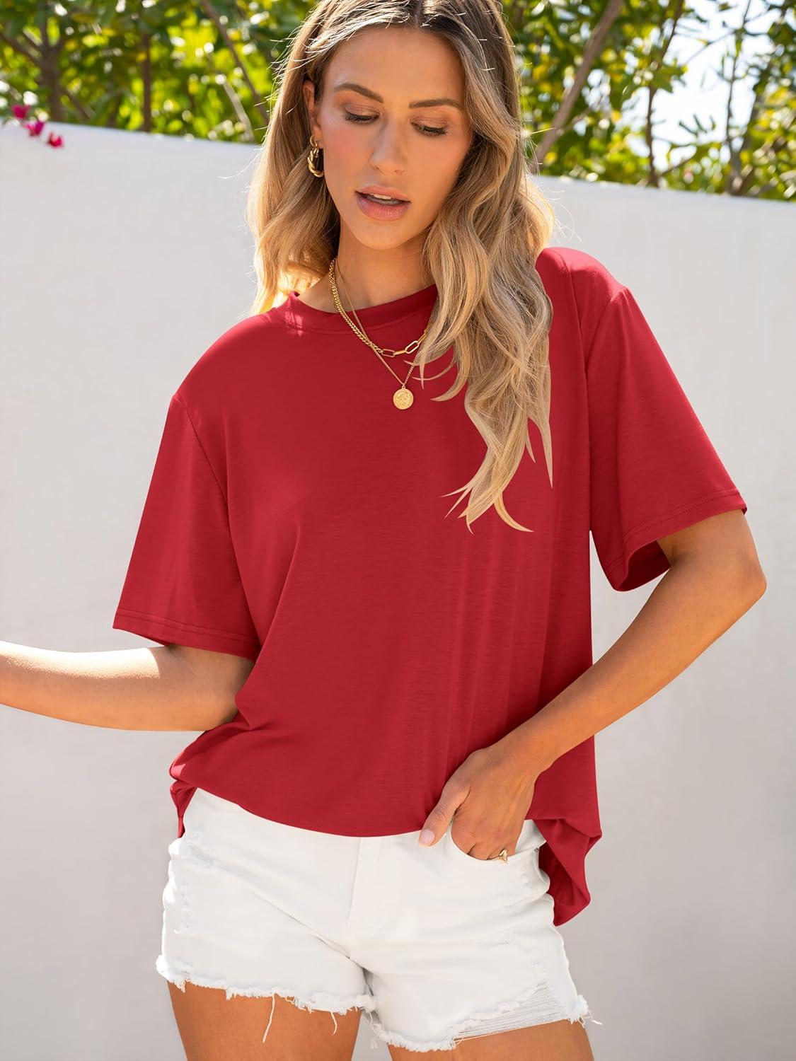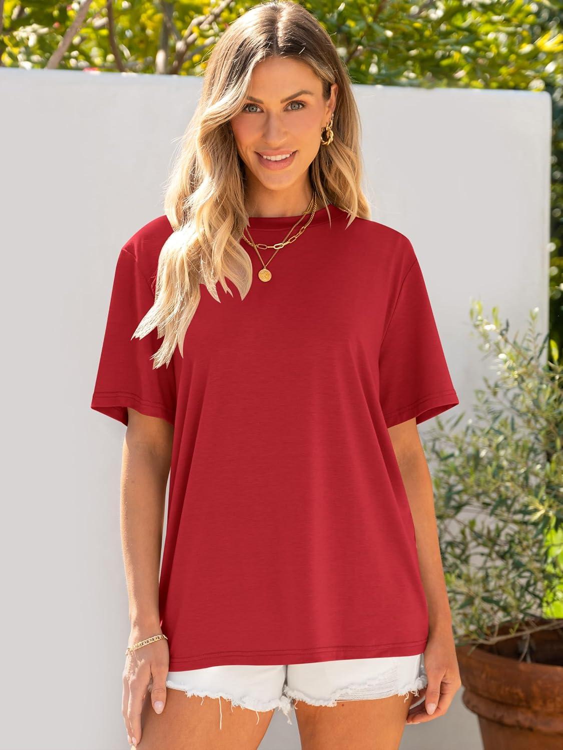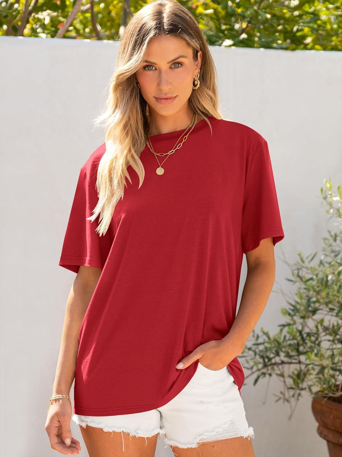 ANRABESS Womens Oversized T Shirts Short Sleeve Crewneck Tops Casual Loose Basic Tee Shirts 2025 Summer Trendy Outfits(Red)