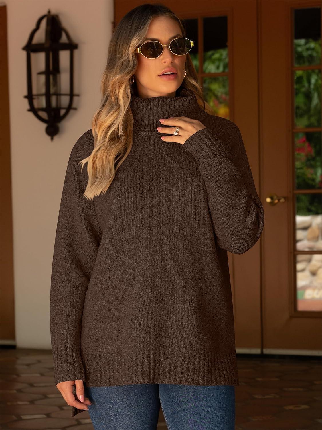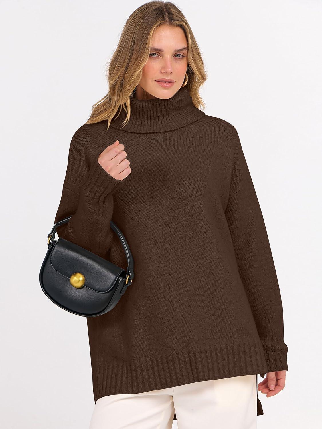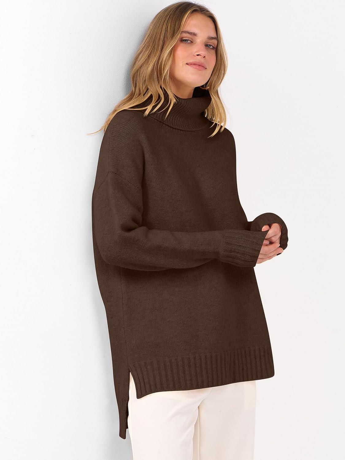 Get the ANRABESS Womens Oversized Turtleneck Sweaters Casual Fall Long Sleeve Knit Spilt Hem Tunic Pullover Tops 2025 Winter Outfits(Mocha) you want at a discounted price during our markdown sale event.