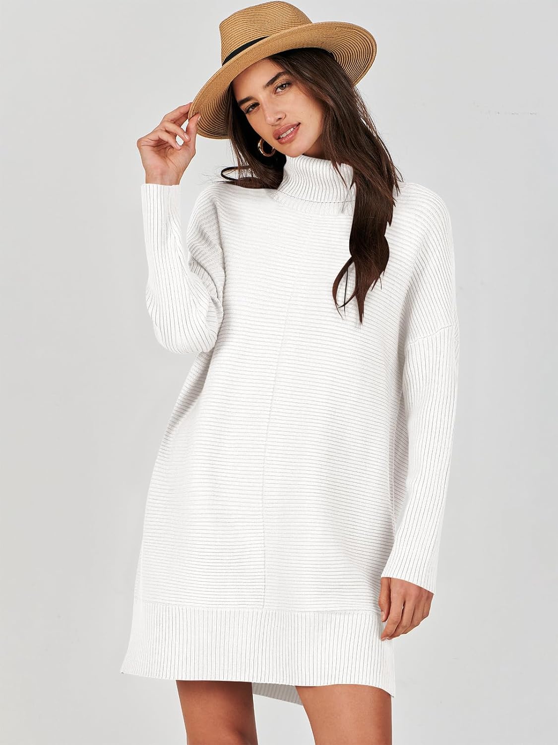 Be the first to review “ANRABESS Women’s Oversized Turtleneck Sweaters Dress Pullover Batwing Sleeve Split Hem 2023 Winter Casual Short Dress(White)” Cancel reply
