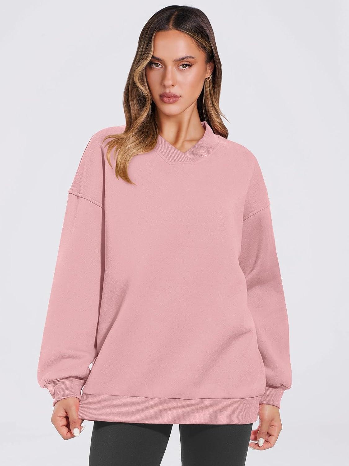 ANRABESS Women Oversized Sweatshirt Hoodies Casual V Neck Long Sleeve Shirts Comfy Fleece Pullover Tops Fashion Fall Clothes