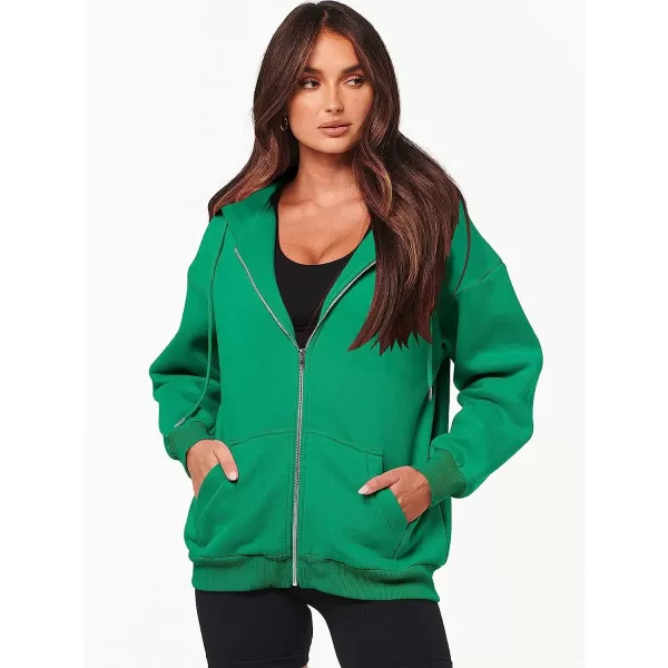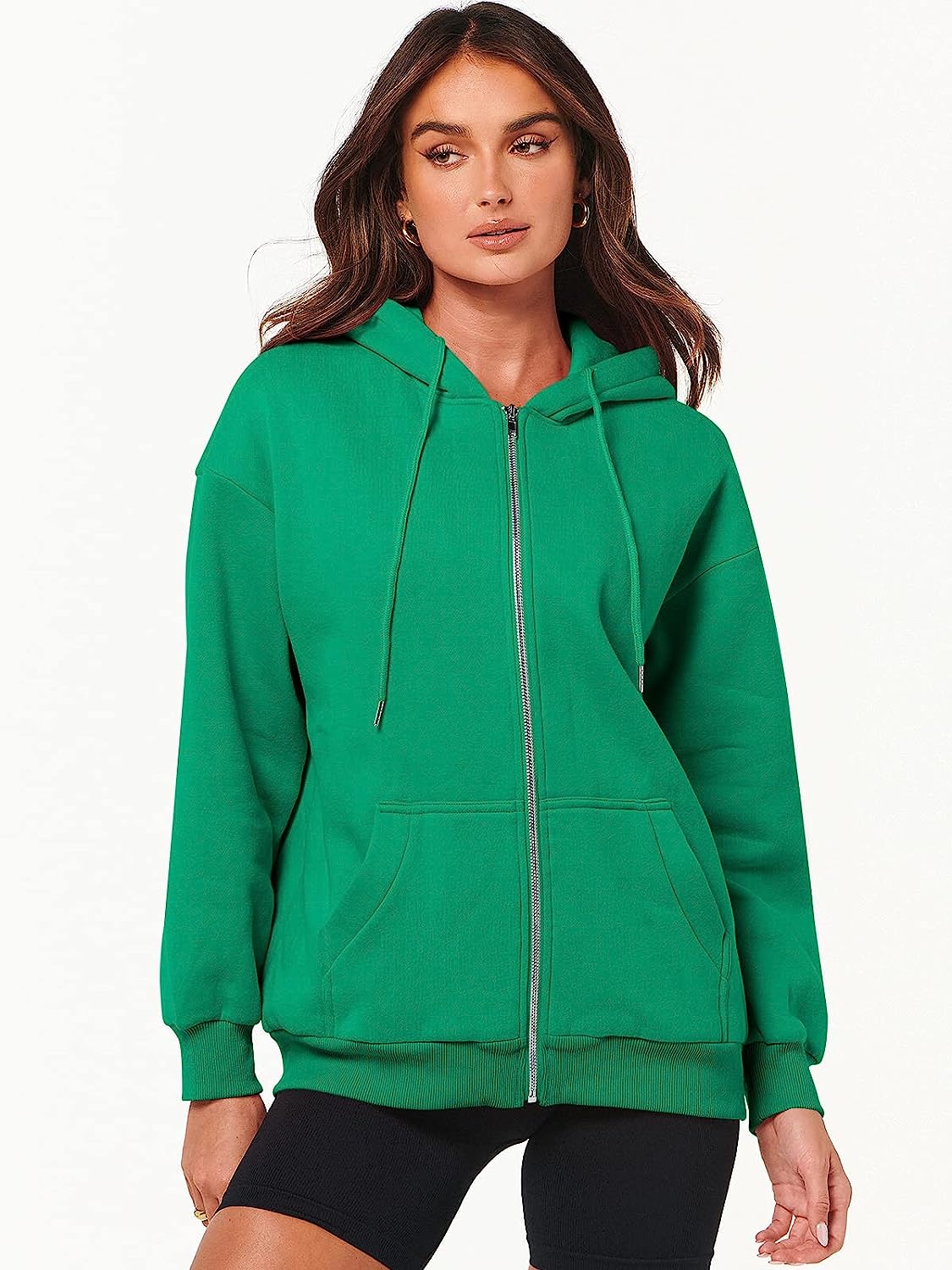 ANRABESS Women's Oversized Zip Up Hoodies Sweatshirts Y2K Clothes Teen Girl Fall Casual Drawstring Jackets with Pockets(Grass)