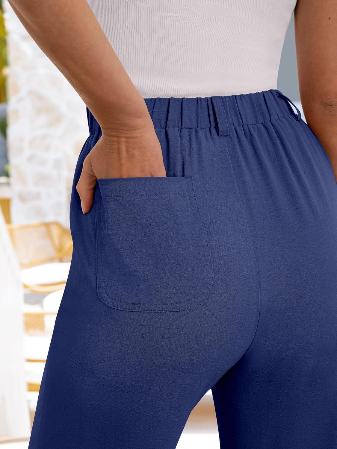 ANRABESS Women’s Pants Wide Leg Elastic Waist Casual Cropped Palazzo Pants 2025 Beach Vacation Summer Trousers with Pocket(Navy Blue)