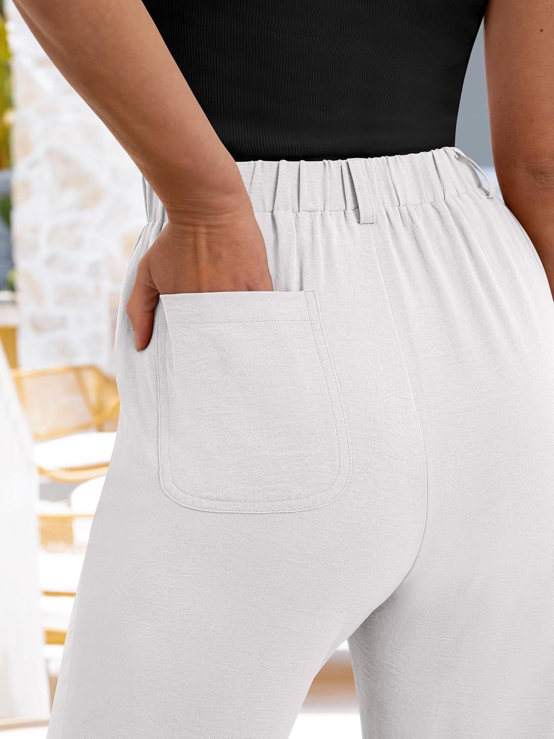 imageANRABESS Womens Pants Wide Leg Elastic Waist Casual Cropped Palazzo Pants 2025 Beach Vacation Summer Trousers with PocketWhite