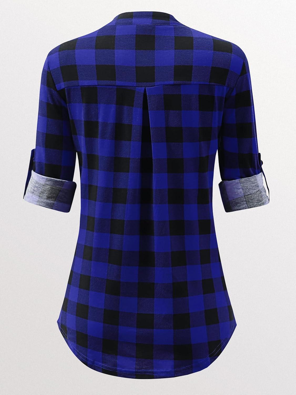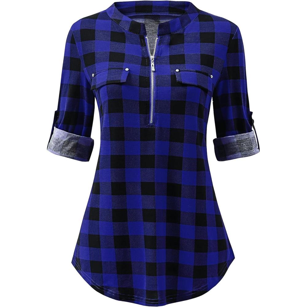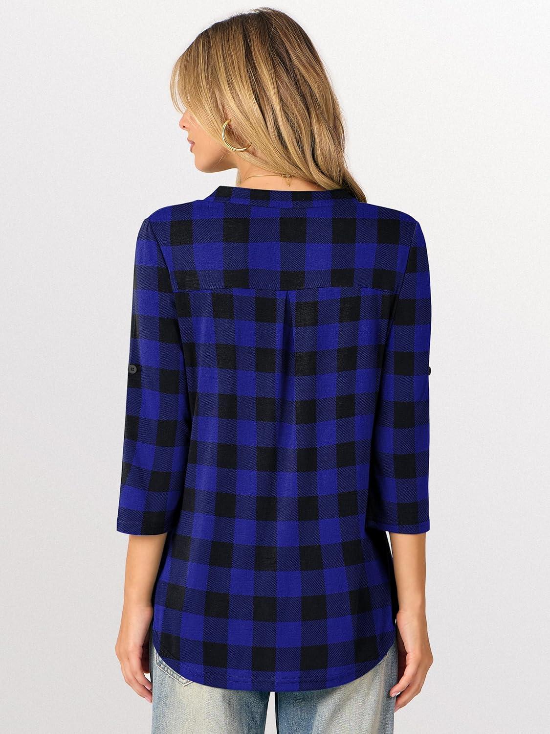 ANRABESS Womens Plaid Shirts 3/4 Length Sleeve Half Zip Business Casual Tops Office Work Blouses 2025 Fall Outfits