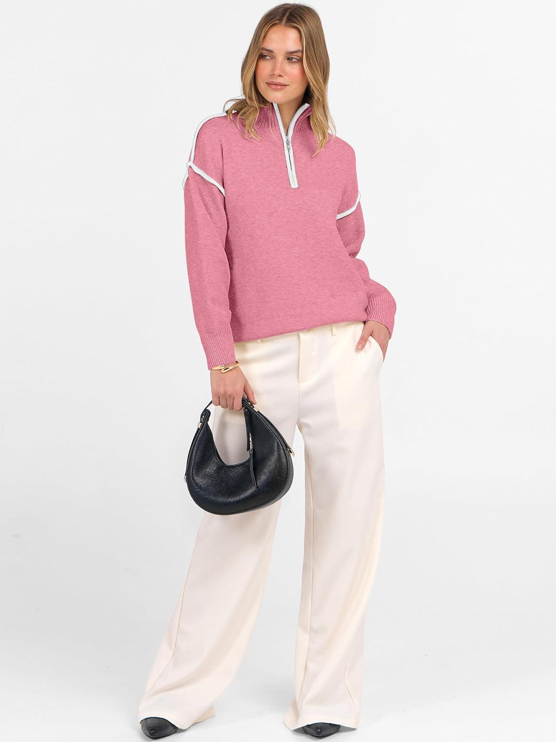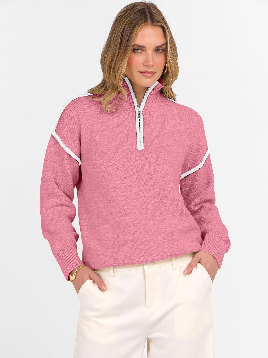 Be the first to review “ANRABESS Womens Quarter Zip Sweaters Fall Long Sleeve V Neck Shirts Collared Business Casual Tops Knit Pullover Sweatshirts(Coral Pink)”