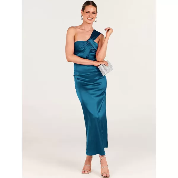 ANRABESS Women’s Satin One Shoulder Wedding Guest Bodycon Dress Cocktail Evening Party Maxi Dresses(Blue)