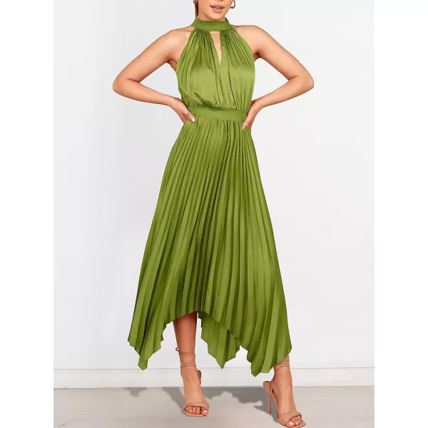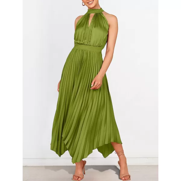 Design – This Stain Dress designed cutout halter neck and keyhole back,shirred high waist,asymmetric hem,pleated skirt with maxi length.