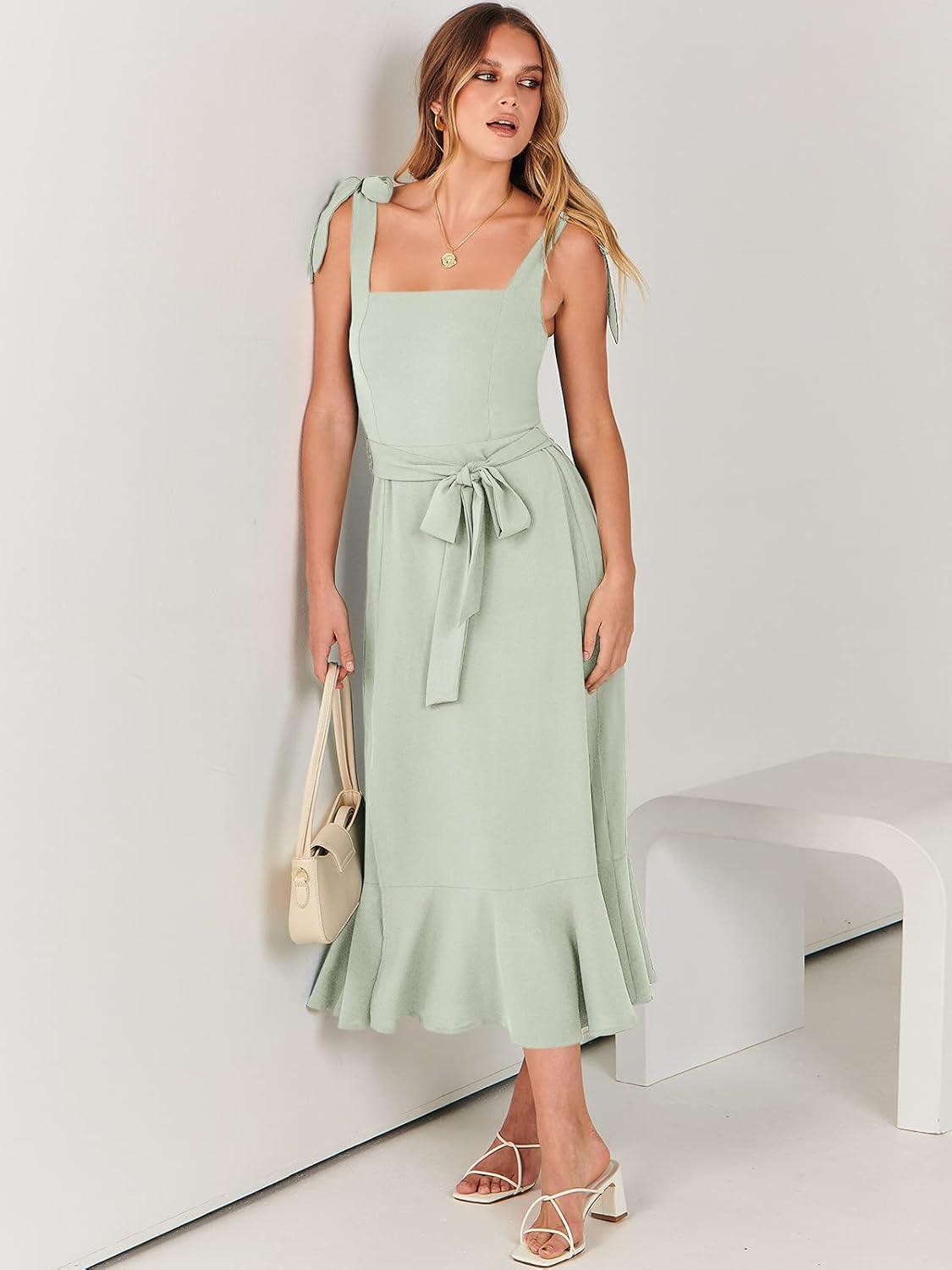 ANRABESS Women’s Square Neck Ruffle Split Midi Elegant Formal Wedding Guest Cocktail Bridesmaid Graduation Party Dresses(Grass)