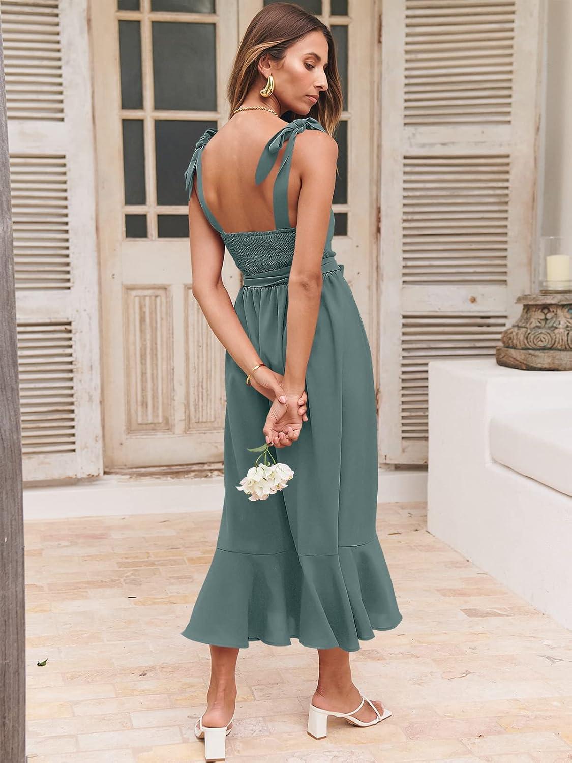 imageANRABESS Womens Square Neck Ruffle Split Midi Elegant Formal Wedding Guest Cocktail Bridesmaid Graduation Party DressesGrass