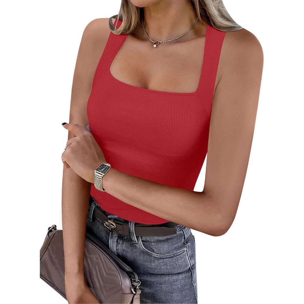 ANRABESS Women’s Square Neck Tank Top Sleeveless Workout Summer Basic Tops Knit Slim Fit 2025 Trendy Shirts Camisole Clothes(Red)