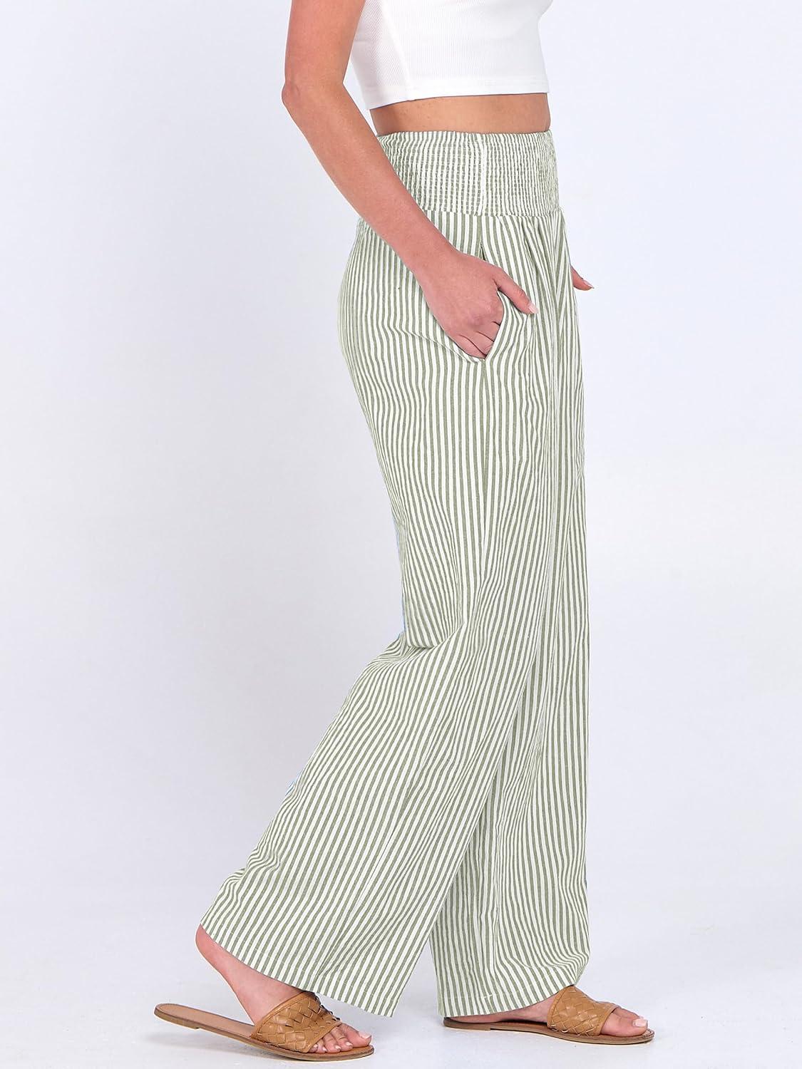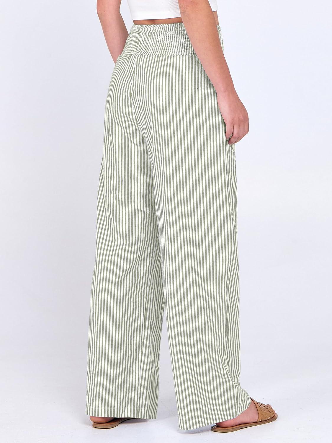 imageANRABESS Womens Striped Gingham Palazzo Pants Wide Leg High Waisted Lounge Pajama Pants Cute Casual Trousers with PocketsArmy Green White Stripe