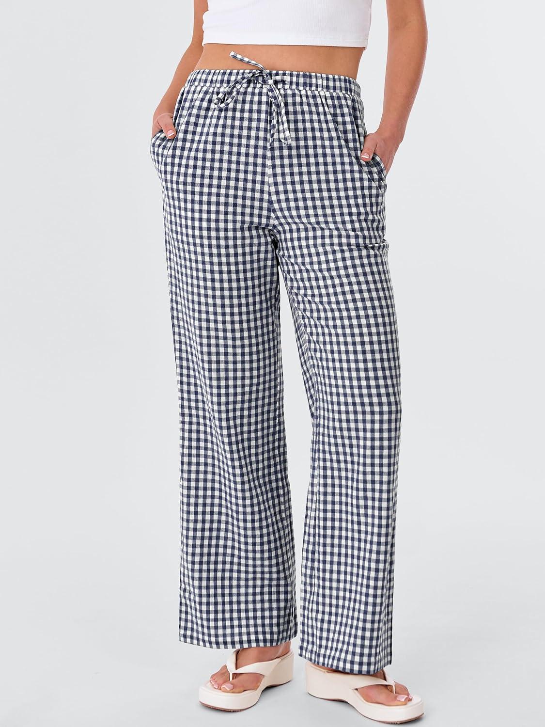 Get the ANRABESS Women’s Striped Gingham Pants 2025 Fall Pajama Lounge Boxer Pants Casual Wide Leg Drawstring PJ Bottoms Trousers(Navy Blue White Plaid) you’ve been eyeing at a discounted price during our seasonal sale event.
