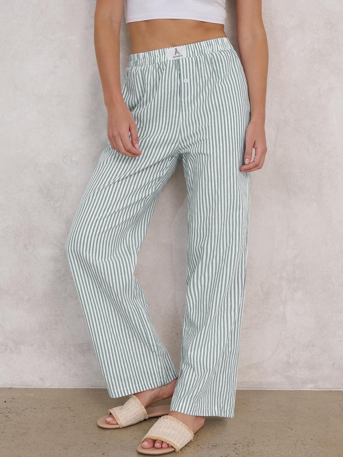 Get up to 60% off on ANRABESS Womens Striped Gingham Pants 2025 Pajama Lounge Boxer Pants Cute Comfy PJ Bottoms with Pockets Y2K Plaid Outfits(Green White Stripe) styles during our winter sale event.