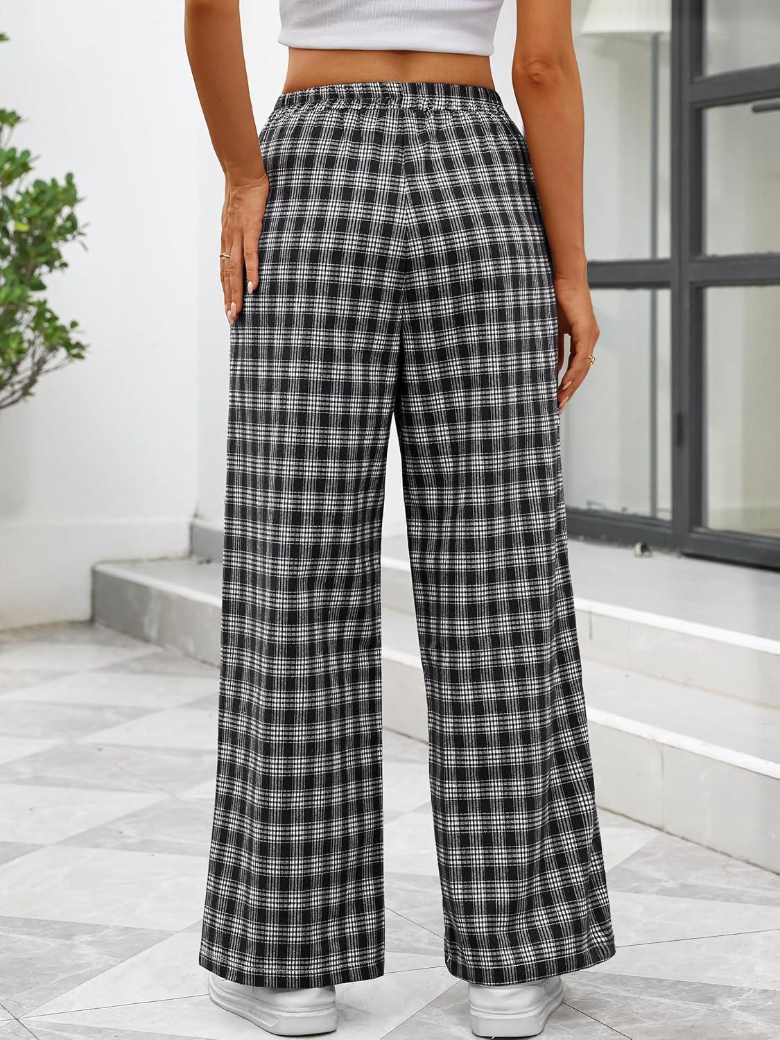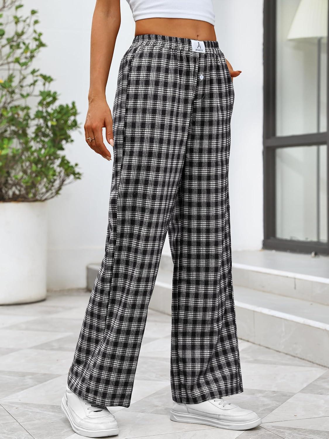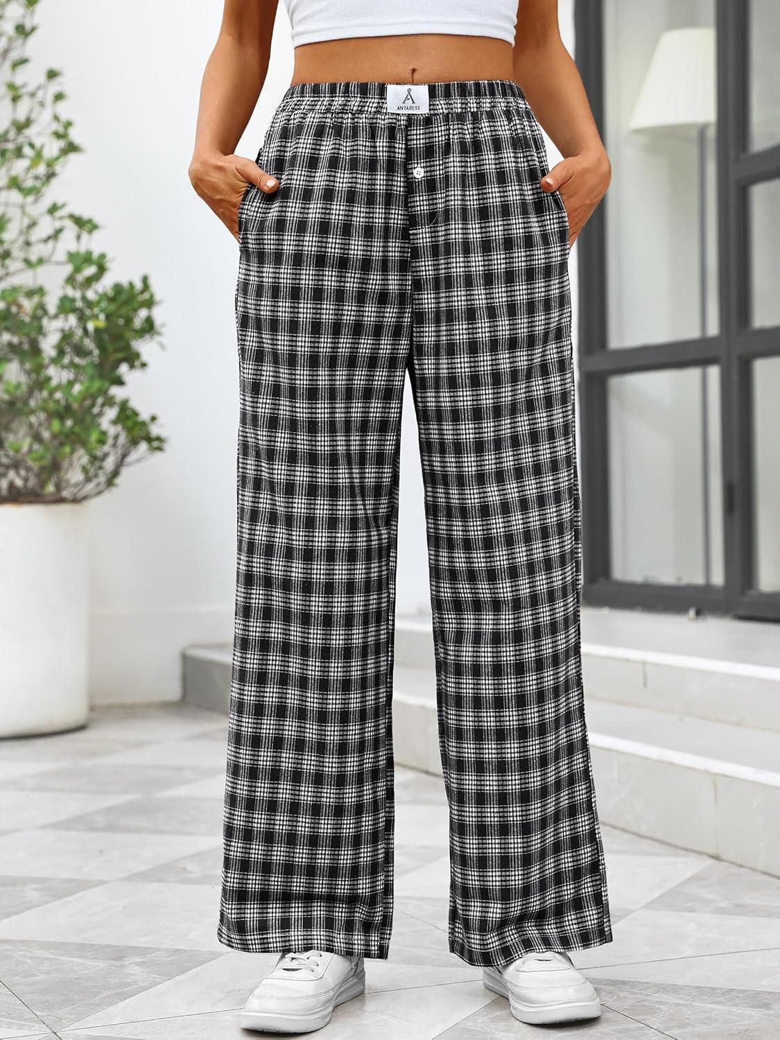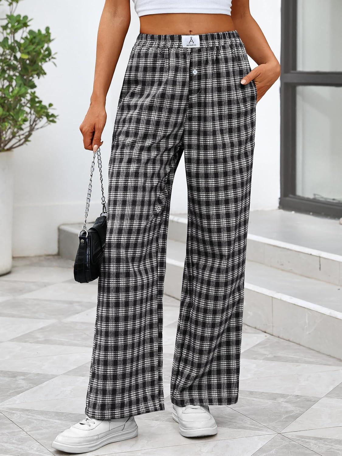 ANRABESS Womens Striped Gingham Pants 2025 Pajama Lounge Boxer Pants Cute Comfy PJ Bottoms with Pockets Y2K Plaid Outfits(Multi Black Plaid)