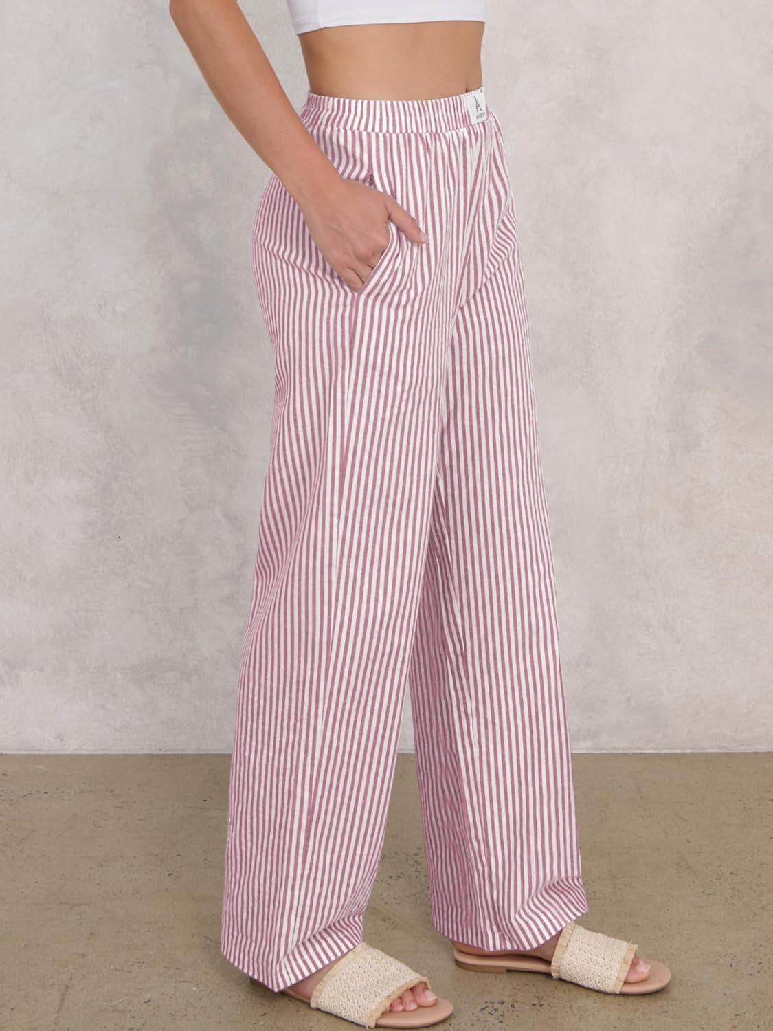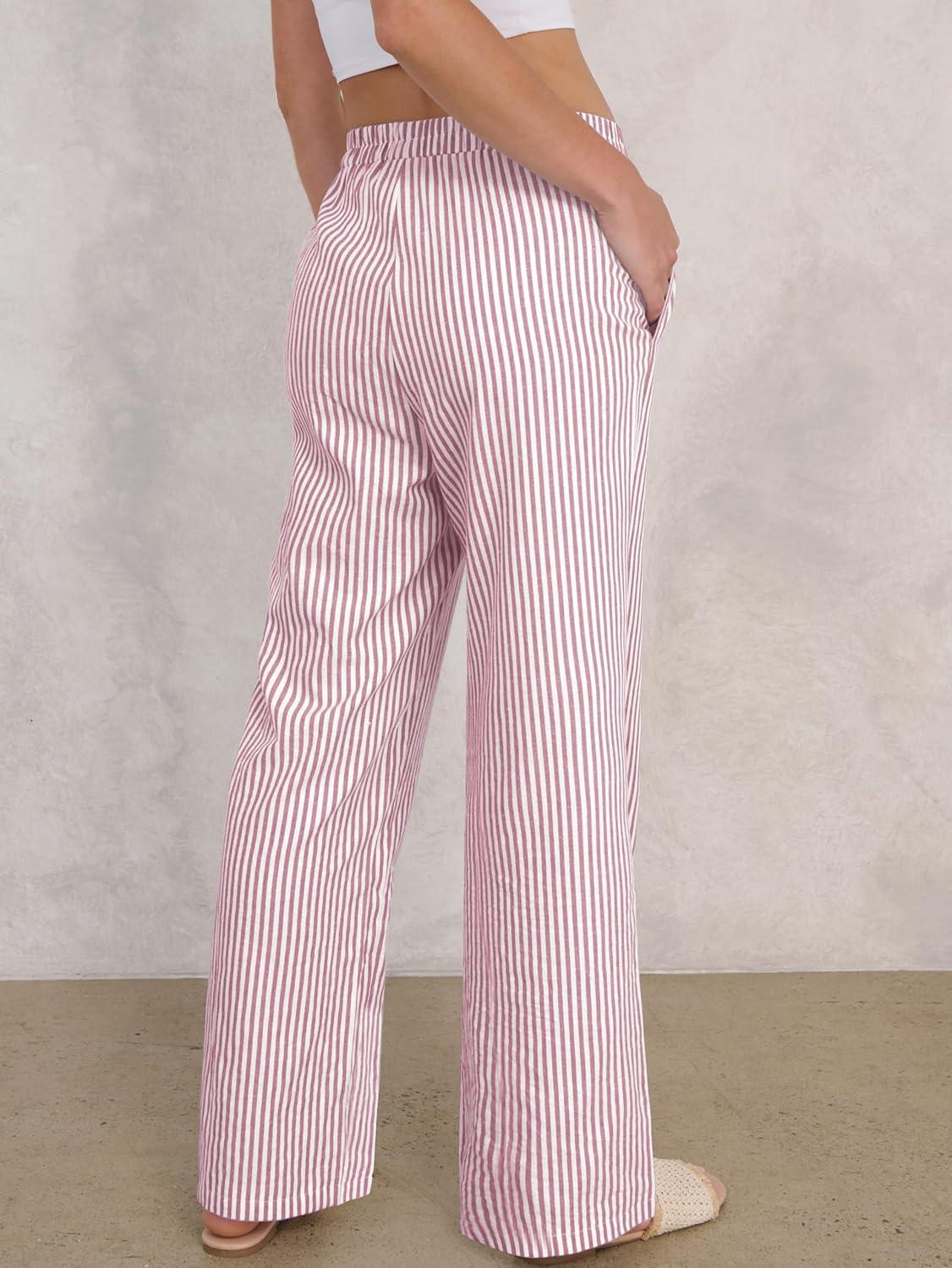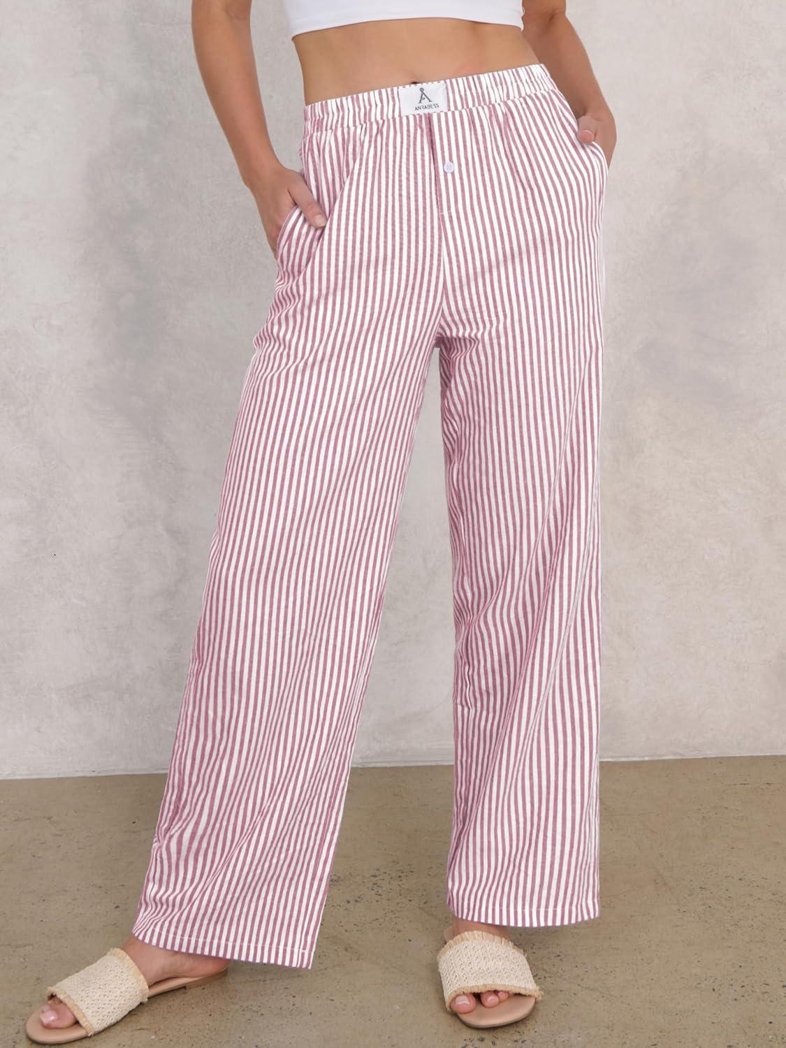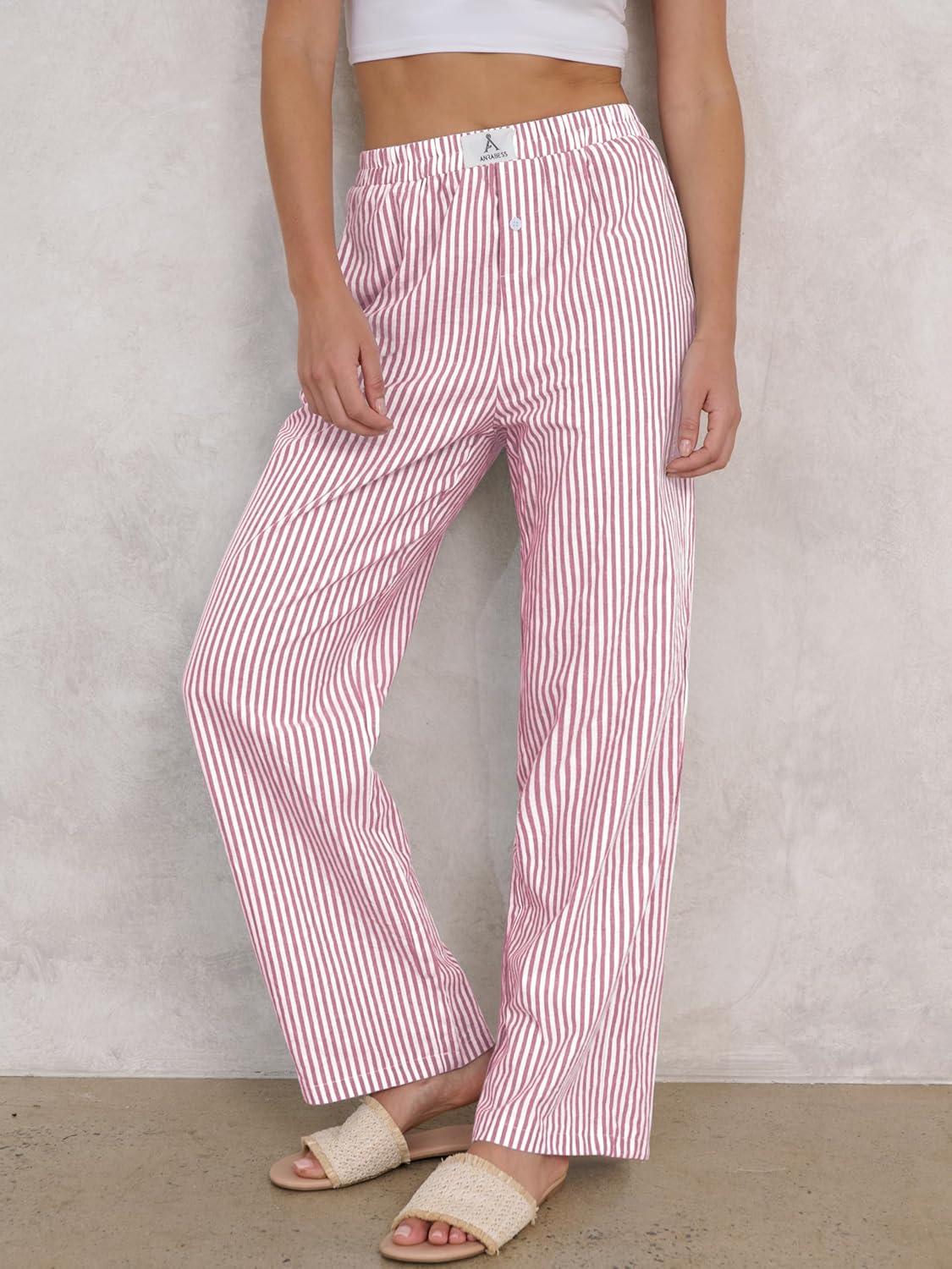 ANRABESS Womens Striped Gingham Pants 2025 Pajama Lounge Boxer Pants Cute Comfy PJ Bottoms with Pockets Y2K Plaid Outfits(Pink White Stripe)