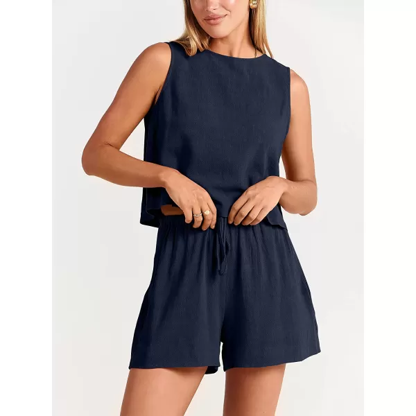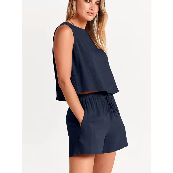 imageANRABESS Womens Summer 2 Piece Outfits Shorts Sets Sleeveless Crop Top Tank and High Waisted Shorts Romper PocketsNavy Blue