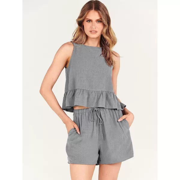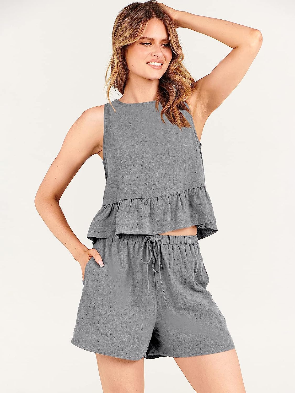 imageANRABESS Womens Summer 2 Piece Outfits Shorts Sets Sleeveless Ruffle Crop Top Tank and Drawstring Shorts RomperLight Gray