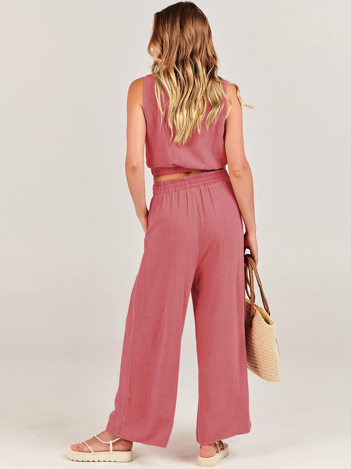 Get the ANRABESS Women’s Summer 2 Piece Outfits Sleeveless Round Neck Crop Top Tank and High Waisted Pants Jumpsuit Lounge Set(Peach) you’ve been eyeing at a discounted price during our seasonal sale event.