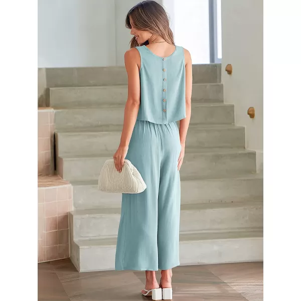 imageANRABESS Womens Summer 2 Piece Outfits Sleeveless Tank Crop Button Back Top Cropped Wide Leg Pants Set PocketsBlue
