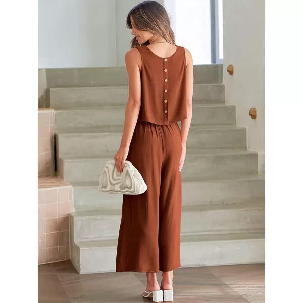 imageANRABESS Womens Summer 2 Piece Outfits Sleeveless Tank Crop Button Back Top Cropped Wide Leg Pants Set PocketsBrick Red