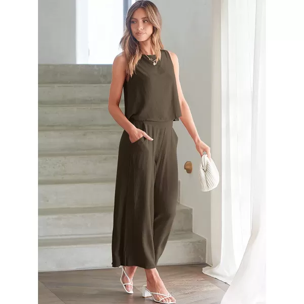 imageANRABESS Womens Summer 2 Piece Outfits Sleeveless Tank Crop Button Back Top Cropped Wide Leg Pants Set PocketsDark Gray