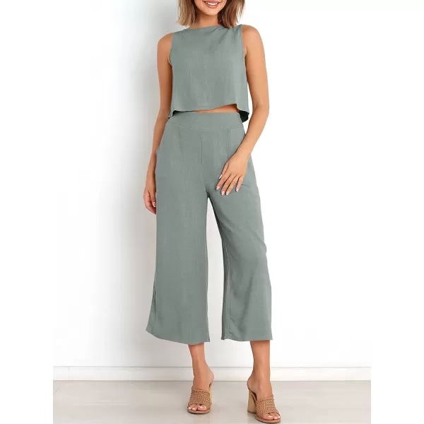imageANRABESS Womens Summer 2 Piece Outfits Sleeveless Tank Crop Button Back Top Cropped Wide Leg Pants Set PocketsCyan Gray