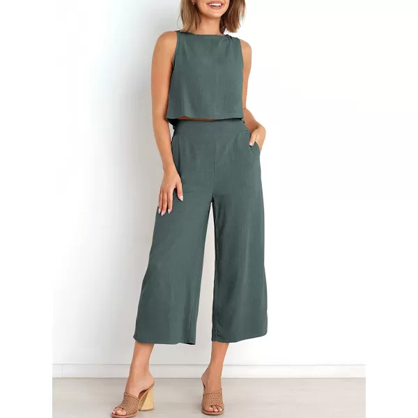 imageANRABESS Womens Summer 2 Piece Outfits Sleeveless Tank Crop Button Back Top Cropped Wide Leg Pants Set PocketsDark Gray