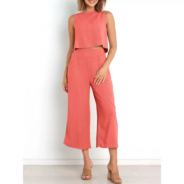 ANRABESS Women’s Summer 2 Piece Outfits Sleeveless Tank Crop Button Back Top Cropped Wide Leg Pants Set Pockets(Peach)